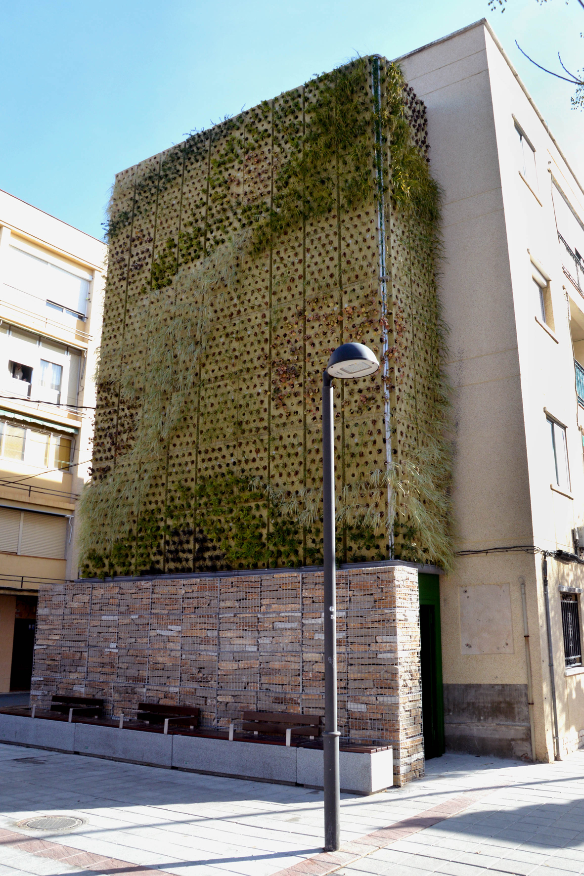 El alcalde destaca que el jardín vertical de la plaza del Azafrán supone una mejora para el barrio y la ciudad
