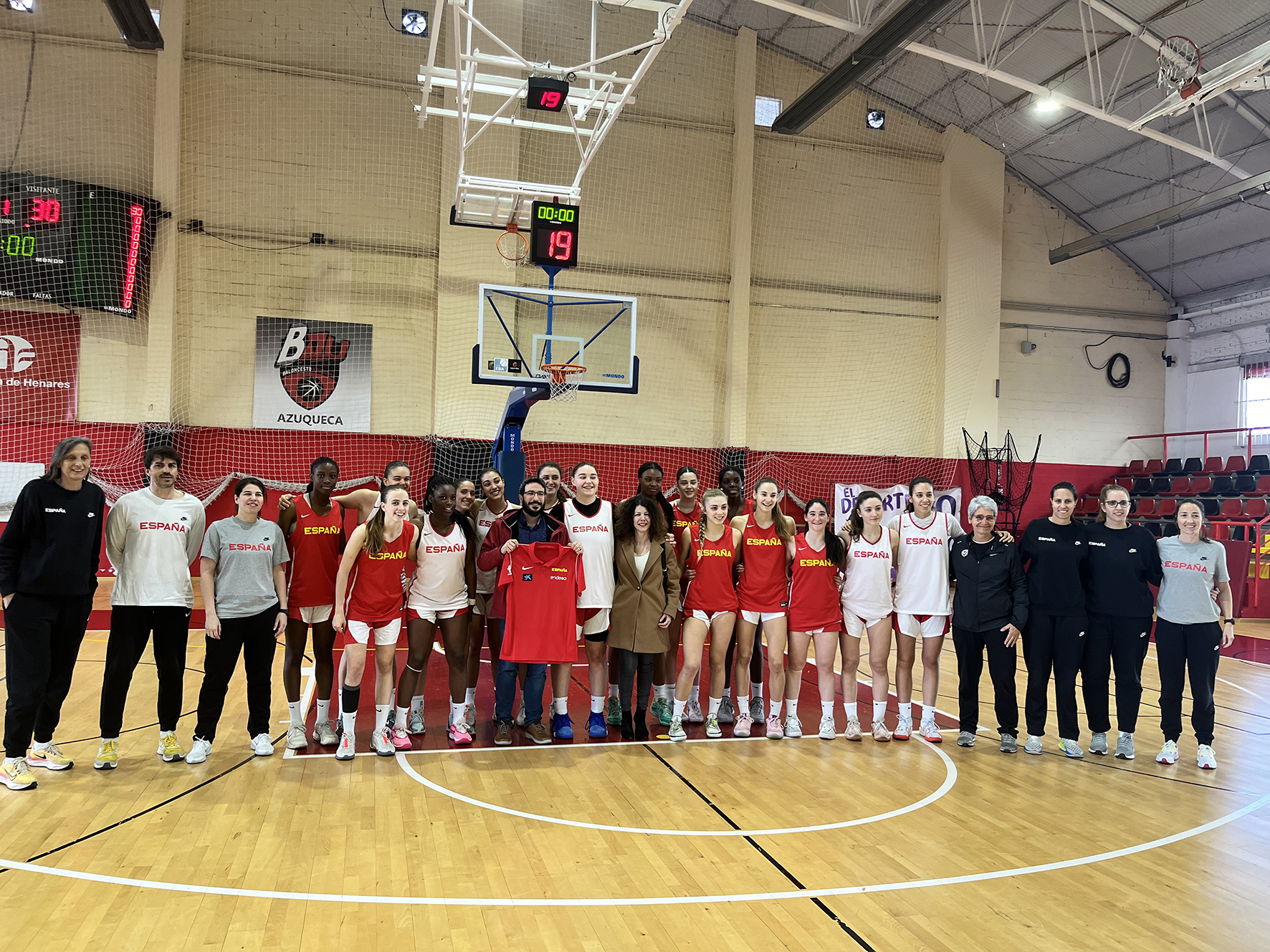 El alcalde y la concejala de Deportes visitan a la selección de baloncesto U16 femenina, concentrada en Azuqueca