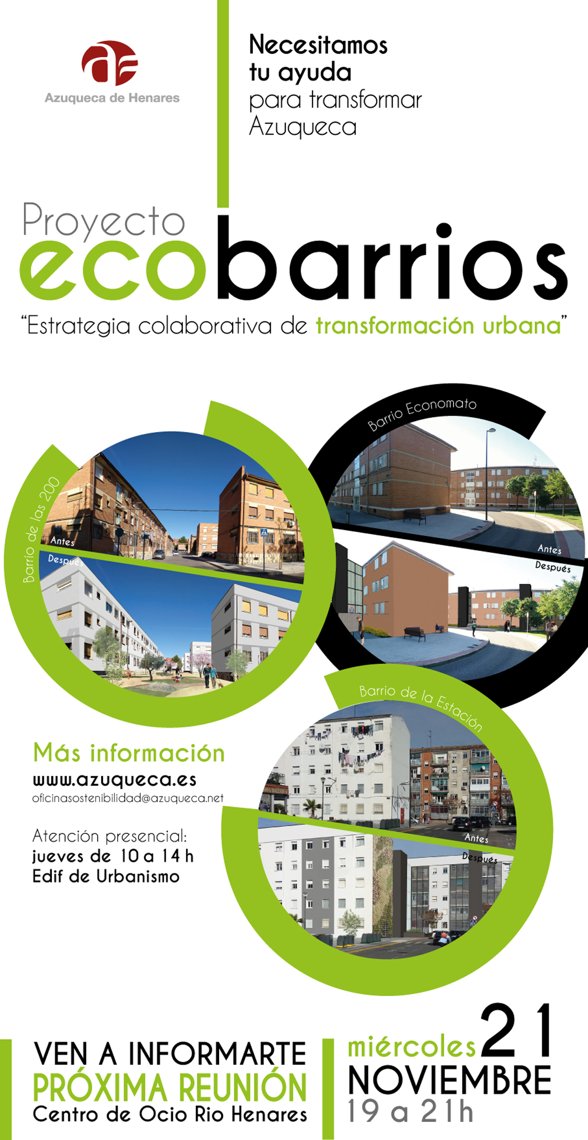 En el marco del programa municipal 'Rehabilitación energética y mejora de la accesibilidad en viviendas', el Ayuntamiento de Azuqueca de Henares lanza un nuevo proyecto: 'Ecobarrios'. "Se trata de una estrategia colaborativa de transformación urbana con la que se pretende que los vecinos y vecinas, en especial, de las zonas más antiguas de la ciudad, como el barrio de Las 200, del Economato o de la Estación, participen de manera activa y se involucren en el desarrollo de intervenciones de embellecimiento y modernización de estos barrios", avanza el concejal de Desarrollo Sostenible, Juan Pablo Román, quien añade que este miércoles, 21 de noviembre, se organiza a las 19 horas en el Centro de Ocio una sesión informativa para "explicar los detalles y objetivos del proyecto".El Ayuntamiento lanzó hace un año el programa de rehabilitación energética y mejora de la accesibilidad en viviendas en el marco de la Estrategia de Desarrollo Urbano Sostenible Integrado (EDUSI). El objetivo es "mejorar la calidad de vida de los vecinos y vecinas, reducir el gasto energético en las viviendas hasta en un 70 por ciento e incrementar el valor de los inmuebles en el mercado inmobiliario". "Disponemos de una Oficina de Sostenibilidad donde se ofrece a los propietarios de viviendas y a las comunidades de vecinos el asesoramiento técnico necesario para acometer la reforma de los inmuebles: tipos de obra más convenientes en cada caso, líneas de ayudas y formas de financiación", recuerda el edil.Para el desarrollo de este programa, el Consistorio cuenta con la colaboración de la empresa Saint Gobain Isover, ubicada en Azuqueca y especializada en soluciones de aislamiento; de Caixa Bank, con condiciones de préstamo favorables para quienes se beneficien de este programa, y de la Universidad de Alcalá de Henares, que, después del trabajo de un equipo de investigadores, presentó propuestas de rehabilitación en varias zonas residenciales de Azuqueca.La Oficina de Sostenibilidad presta atención en el edificio municipal de Urbanismo (parque de La Constitución) los jueves, de 10 a 14 horas. Se puede concertar cita previa a través del teléfono 949 34 82 84 y en el correo electrónico