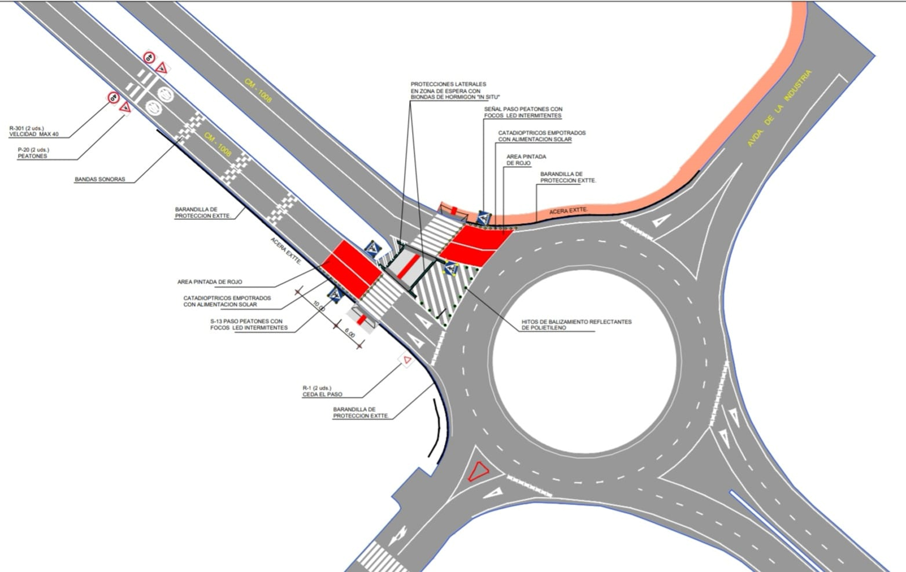 El Ayuntamiento ejecutará un nuevo paso de peatones en la intersección de la CM-1008 y la avenida de la Industria