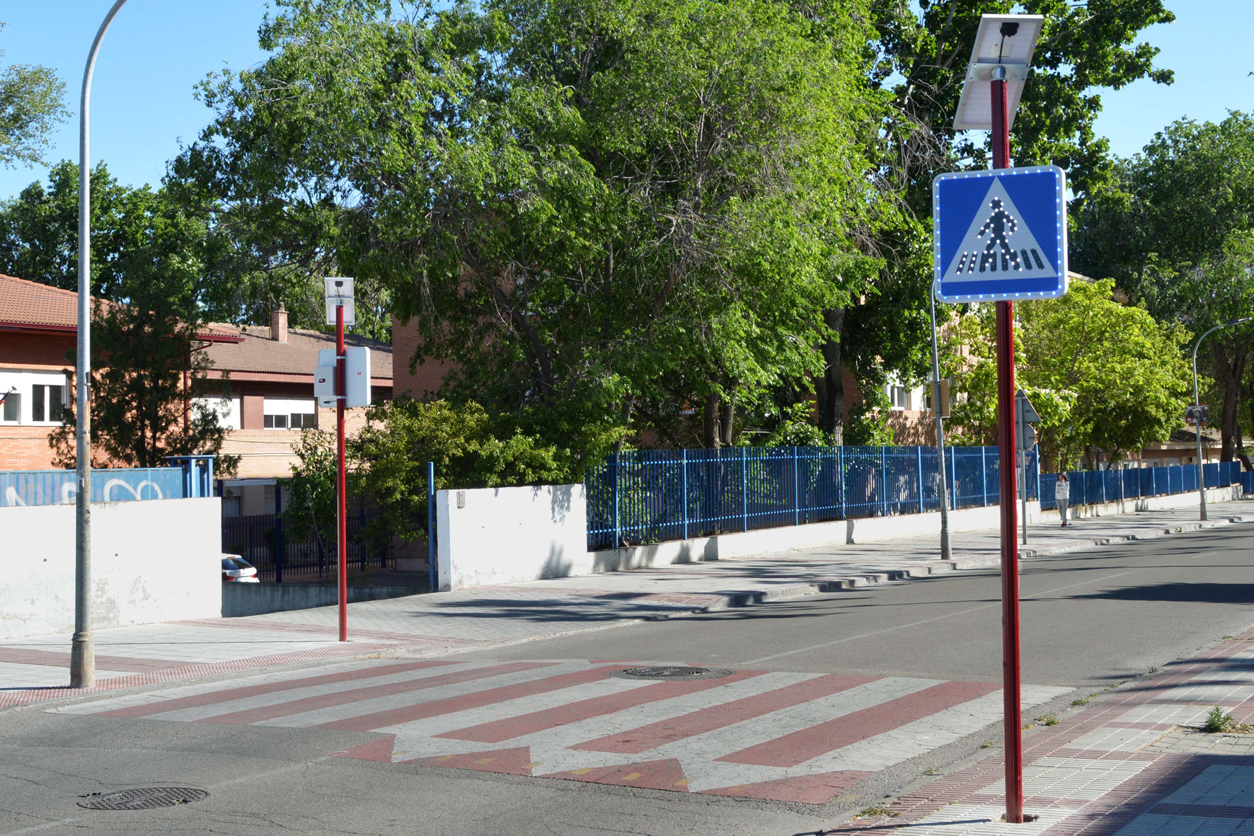 El Ayuntamiento de Azuqueca de Henares ha completado la instalación de una veintena de señales luminosas de pasos de peatones. "Se trata de una medida con la que se pretende mejorar la visibilidad de las zonas marcadas para cruzar las calles y, de este modo, llamar la atención de los conductores con el fin de que reduzcan la velocidad y aumentar la seguridad de los viandantes", explica la concejala de Seguridad Ciudadana en funciones, Sagrario Bravo, quien aclara que la inversión municipal ha sido de 24.442 euros. "En su mayoría, las señales se han colocado en el entorno de los centros educativos de la localidad, tanto Escuelas Infantiles, como colegios e institutos, donde el tránsito de peatones, en especial en las horas de salida y entrada, es muy abundante", explica la concejala en funciones, Sagrario Bravo, quien añade que "algunas otras, siguiendo criterios técnicos, se han ubicado en zonas por donde también pasan muchos viandantes, por ejemplo, en la avenida de Enmedio, junto al parque de Los Almendros", detalla la edil.Estas señales luminosas utilizan tecnología led y disponen de placas solares para producir la energía necesaria para su funcionamiento.