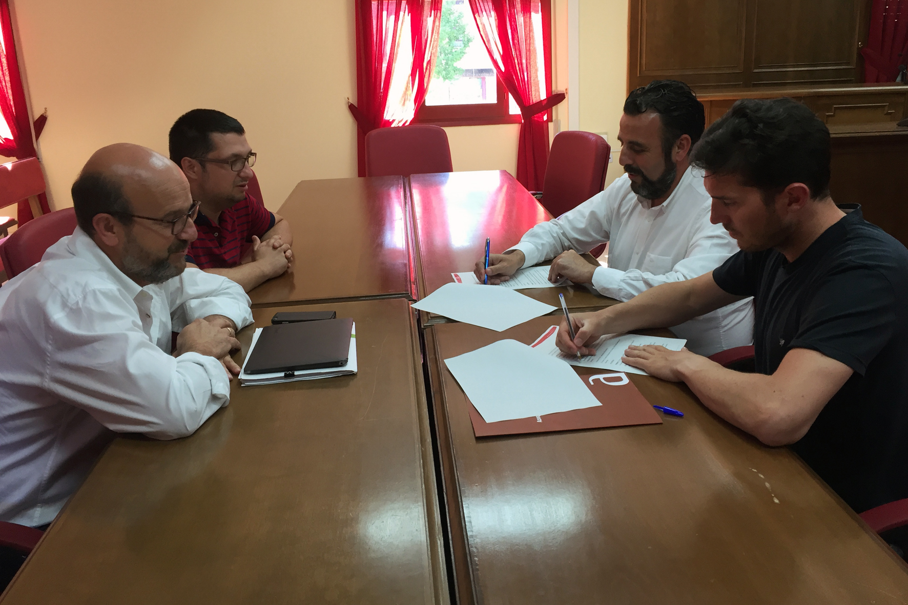 El alcalde de la ciudad, José Luis Blanco, y el presidente del Club Deportivo Azuqueca, Jorge Fuentenebro, han firmado un convenio de colaboración para seguir trabajando en el fomento del deporte en la ciudad. El convenio recoge una aportación económica del Ayuntamiento de 70.000 euros, así como la cesión del campo municipal San Miguel. Por su parte, el club local se compromete a la celebración de dos eventos deportivos anuales (al menos uno con cabida para niños y niñas menores de 14 años) y a colaborar con el Ayuntamiento. "Una de las grandes apuestas de este Ayuntamiento es el apoyo y la promoción del deporte", apunta José  Luis Blanco, quien añade "este convenio de colaboración es solo una muestra más del fuerte compromiso que tiene este equipo de gobierno con el deporte, en este caso, el fútbol, y con los hábitos saludables". "El deporte es una de las mejores formas de integración y de cohesión social, ya que transmite una serie de valores tan fundamentales en la sociedad como lo son la solidaridad, el respeto o el compañerismo", concluye el primer edil."Con este convenio, queremos respaldar un año más a un club que lleva muchos años haciendo un gran trabajo por el deporte en Azuqueca, y que este año se plantea la meta del ascenso a Segunda B", apunta Blanco, quien además recuerda "el Ayuntamiento tiene previsto ampliar el graderío del San Miguel con 231 nuevas plazas".