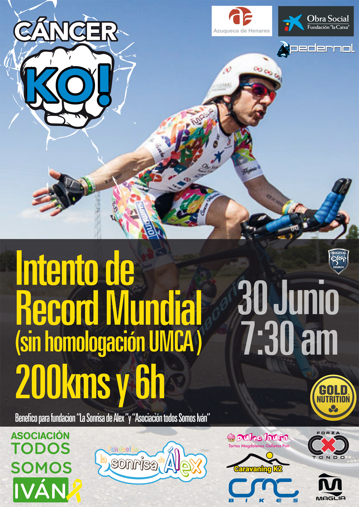 Este sábado 30 de junio, el ciclista Sergio Matey, Keko, intentará batir el récord mundial de los 200 kilómetros en 6 horas. Este vecino de Azuqueca de Henares comenzará el reto a las 7:30 horas desde la rotonda de la carretera de la Patata (CM-1008), a la altura del Punto Limpio, y completará un recorrido de ida y vuelta entre Azuqueca y Fontanar."Desde el Ayuntamiento, apoyamos la gesta de este gran deportista que tantos buenos momentos nos ha proporcionado en los últimos años", explica el alcalde de Azuqueca, José Luis Blanco, quien destaca que "Keko, con su compromiso y sus valores solidarios, está consiguiendo que la bicicleta cuente cada vez con más adeptos". En este sentido, el primer recuerda que el récord no tiene homologación de la UMCA (Asociación de Ultraciclismo) y que el beneficio se destinará a la fundación 'La sonrisa de Álex' y la asociación 'Todos somos Iván'.José Luis Blanco ha lanzado una invitación para que "los vecinos y vecinas de Azuqueca y del Corredor se animen a apoyar este intento de récord acompañando a Keko durante los kilómetros para los que cada uno esté preparado". "No se trata de un récord personal, sino de un récord colectivo de la ciudad de Azuqueca en la lucha de Keko para que se destinen todos los recursos necesarios a la investigación contra el cáncer", afirma. "En nombre de todos los vecinos, quiero reconocer la lucha solidaria de Keko Matey porque, con su esfuerzo, tesón y capacidad de superación, nos demuestra que la sociedad tiene que trabajar de una forma colectiva para mejorar la investigación contra el cáncer", señala el alcalde.Por su parte, el concejal de Deportes, Sergio de Luz, destaca que "este intento de récord pretende dar visibilidad en la lucha contra el cáncer y concienciar a la población de la importancia de destinar fondos a la investigación".