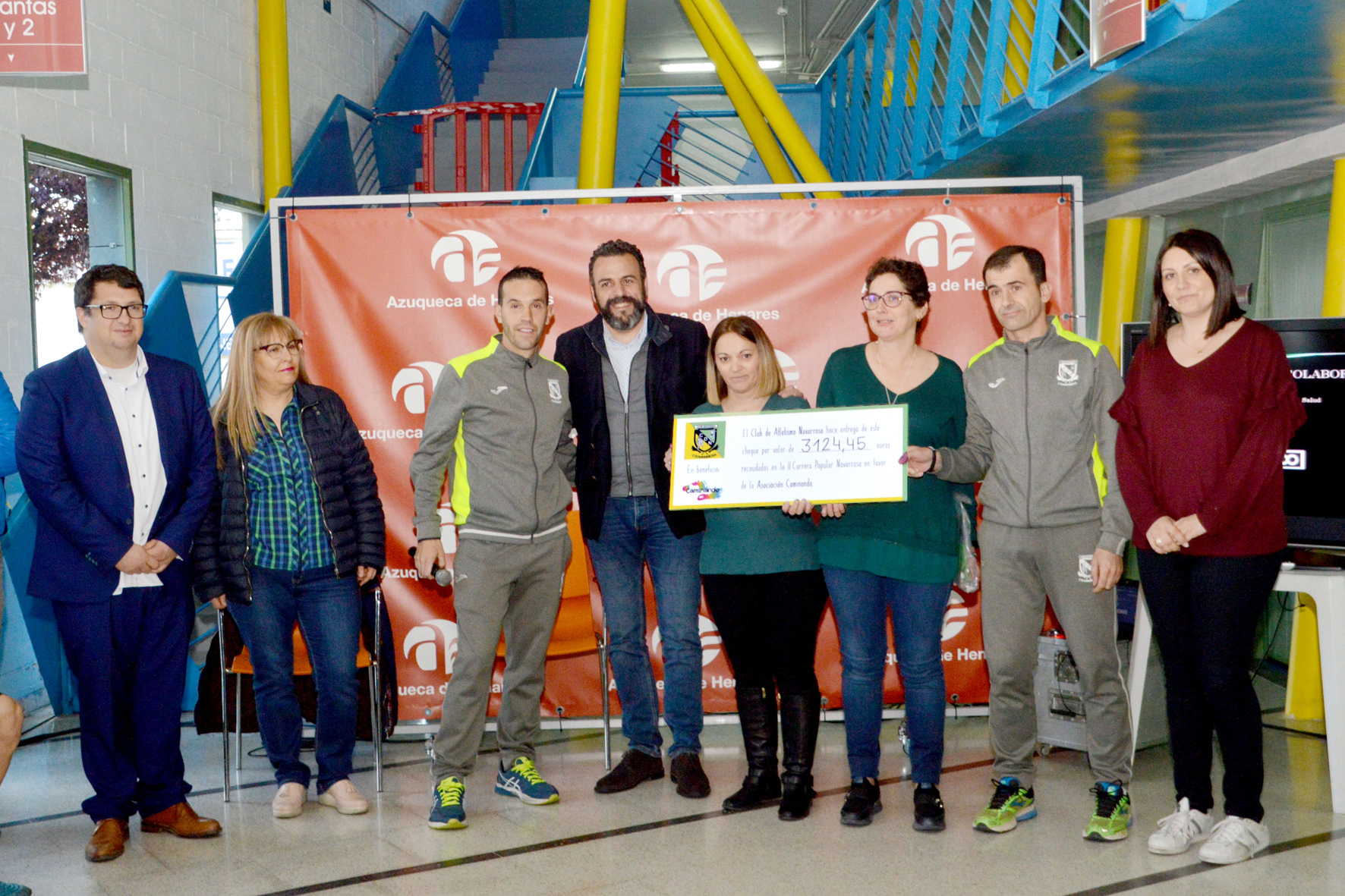 El polideportivo Ciudad de Azuqueca acogió el viernes 5 de abril la Jornada Deporte y Solidaridad, organizada por el Ayuntamiento con el objetivo de destacar los valores asociados al ejercicio físico, en especial, la solidaridad. En este sentido, el Club Deportivo Navarrosa hizo entrega de un cheque por valor de 3.124,45 euros a Caminando, una asociación sin ánimo de lucro que persigue la inclusión y la mejora de la calidad de vida de los niños y niñas con discapacidad y sus familias. El dinero se recaudó a través de las inscripciones en la segunda Carrera Popular Navarrosa, celebrada el pasado 3 de marzo y que agotó 450 dorsales.El acto contó con la presencia del alcalde azudense, José Luis Blanco, acompañado por el concejal de Deportes, Sergio de Luz, y la edil de Cohesión Social, Elisa Cansado. José Luis Blanco felicitó al CD Navarrosa por la iniciativa, al tiempo que destacó la "importante labor, principalmente, en la atención de los menores con discapacidad, pero también al dar cobertura a las familias y en materia de sensibilización" que realiza la asociación Caminando.La jornada, que contó la presencia de asociaciones y de alumnado de las Escuelas Deportivas Municipales, también sirvió para conocer el proyecto 'Incompletos' de Hugo Lafuente, quien persigue fomentar la donación de médula y ayuda a cumplir los sueños de aquellas personas con limitaciones. Además, los azudenses Keko Matey, ciclista de larga distancia, y Álvaro Rojas, jugador del Isover Basket Azuqueca y monitor de la Escuela Municipal de Baloncesto, hablaron de sus proyectos deportivos vinculados con la solidaridad.