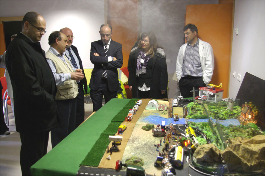El alcalde de Azuqueca de Henares, Pablo Bellido, junto con el delegado de Salud y Bienestar Social en la provincia de Guadalajara, Juan Pablo Martínez, el director asistencial de la Gerencia de Urgencias, Emergencias y Transporte Sanitario del SESCAM, Salvador Espinosa, el gerente de Atención Primaria, Juan Carlos García Arés y la concejala de Promoción de la Salud, Elisa Cansado, han visitado el curso de formación que se está impartiendo en el Centro de Especialidades, Diagnóstico y Tratamiento (CEDT) de la localidad. Bajo el título ‘Simulación y despliegue de estructuras en incidentes con múltiples lesionados’, un total de 40 alumnos están aprendiendo los métodos de actuación en caso de accidentes o catástrofes con numerosos heridos.Los participantes, principalmente médicos y enfermeros de la Gerencia de Urgencias, Emergencias y Transportes Sanitario del SESCAM, técnicos de la empresa de ambulancias y personal de Atención Primaria, están trabajando en dos áreas. “Por un lado, realizan ensayos de montaje y desmontaje del Puesto Médico Avanzado con el fin de poder llevarlo a cabo en el tiempo estipulado, entre diez y quince minutos, y por el otro, reciben una introducción teórica al concepto de triage, es decir, en la atención y clasificación de las víctimas, que se pone en práctica con una maqueta interactiva en la que se reproduce un incidente con múltiples lesionados”, ha explicado el delegado de Salud y Bienestar Social.El Puesto Médico Avanzado es una infraestructura de 60 metros cuadrados que se moviliza desde el Centro Coordinador de Urgencias 112 cuando se reciben llamadas alertando de un incidente con múltiples lesionados. Posteriormente, el primer equipo médico que acuda al lugar decidirá si se desactiva o si se mantiene y se ocupará de informar con detalle sobre la seguridad en la zona, el número de heridos y la gravedad de los mismos. Además, este primer equipo también se ocupa de organizar el espacio, analizar la seguridad y estudiar el material que se va a necesitar.