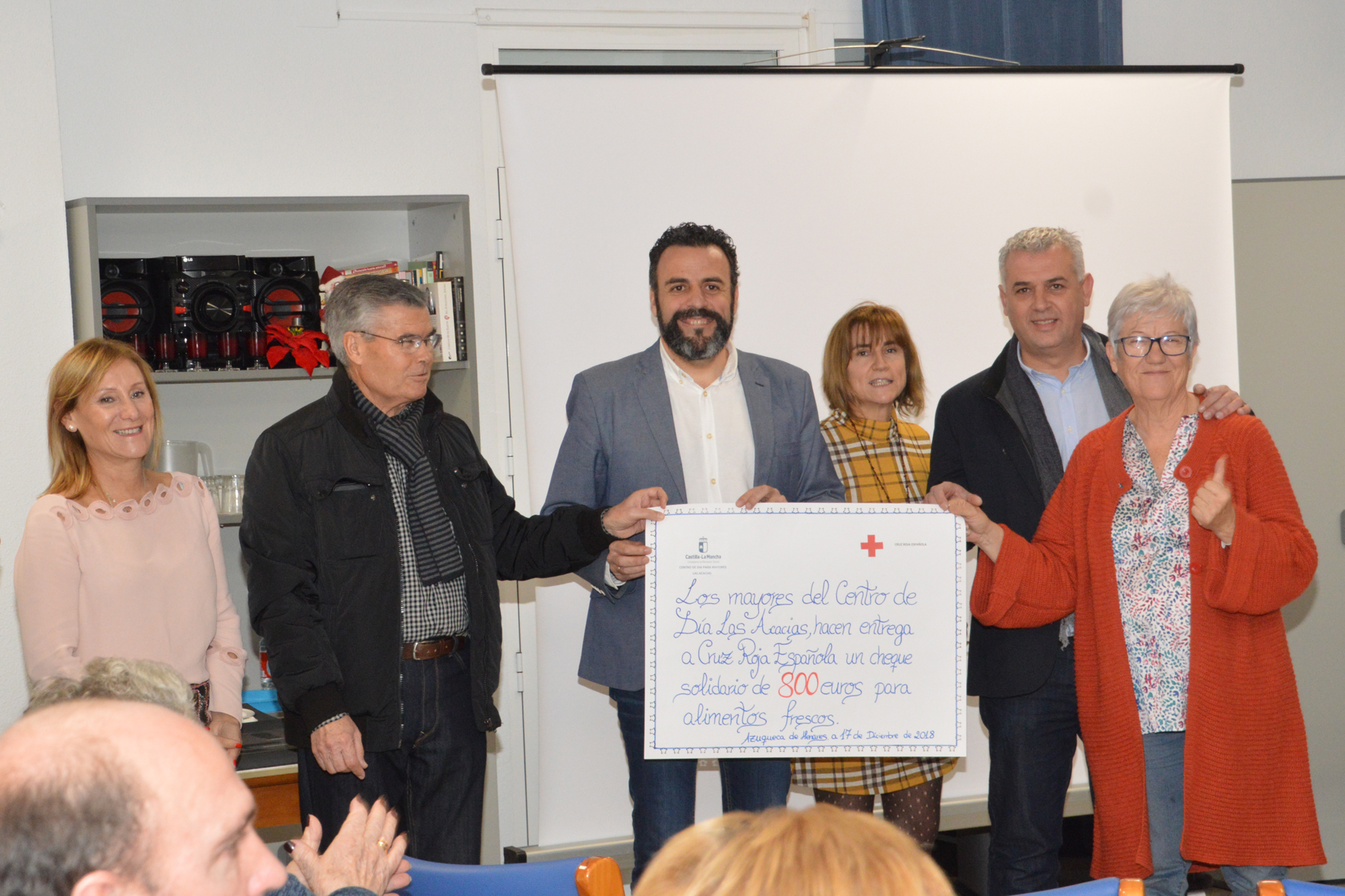 El alcalde de Azuqueca de Henares, José Luis Blanco, y la concejala de Promoción de los Mayores, Rufi Fernández, junto con el director provincial de Bienestar Social de la Junta de Comunidades de Castilla-La Mancha, José Luis Vega, han visitado este lunes, 17 de diciembre, el Centro de Día Las Acacias con motivo de los actos de celebración de su decimosexto aniversario. "Estas instalaciones son un punto de referencia para nuestros mayores, que, según los casos, participan en sus actividades lúdicas y formativas, hacen uso de los servicios disponibles o son atendidos en el Servicio de Estancias Diurnas (SED)", afirma el primer edil, quien ha destacado "el compromiso, el buen hacer y la ilusión" de la directora, Pilar López, así como de las trabajadoras y trabajadores del centro.Los actos de celebración comenzaron el viernes 14 y se prolongan hasta el 4 de enero. Este lunes, se ha hecho entrega de un cheque de 800 euros a la Asamblea Local de Cruz Roja para colaborar con su programa de productos frescos. A continuación, la organización ha impartido una charla de productos de apoyo para mayores.Espectáculos con los bailarines de baile de salón y español, una actuación de la Ronda Las Acacias, talleres de adornos y repostería, cuentos de Navidad, bingos o baile son algunas de las propuestas del programa de celebración. Además, hasta el 6 de enero, el centro acoge un mercadillo solidario con manualidades realizadas por trabajadores, socios y usuarios para recaudar fondos que se entregarán a una ONG.