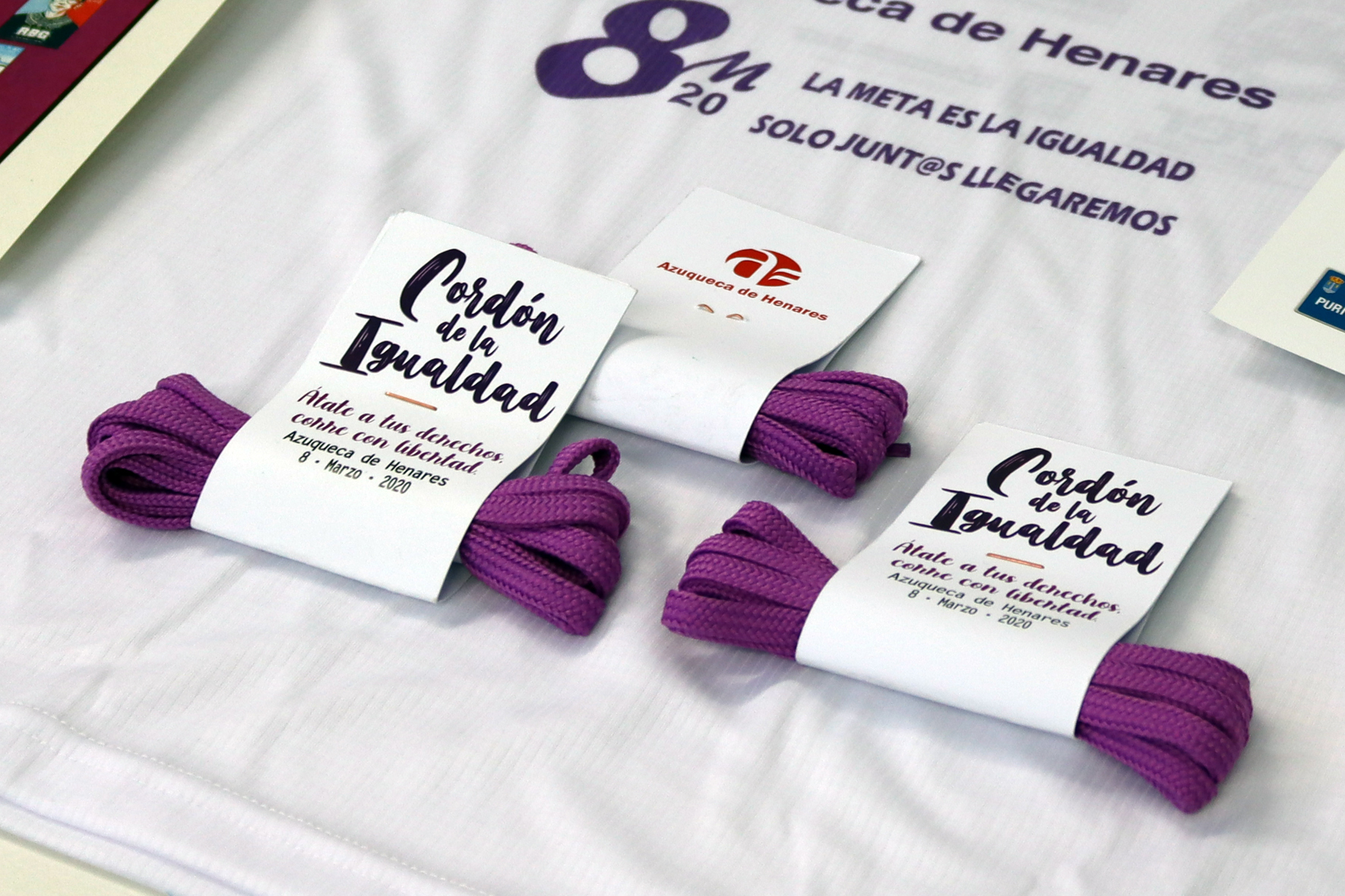 El Consistorio azudense reparte 'Cordones de la Igualdad' para la Carrera Popular Navarrosa del domingo 8 de marzo