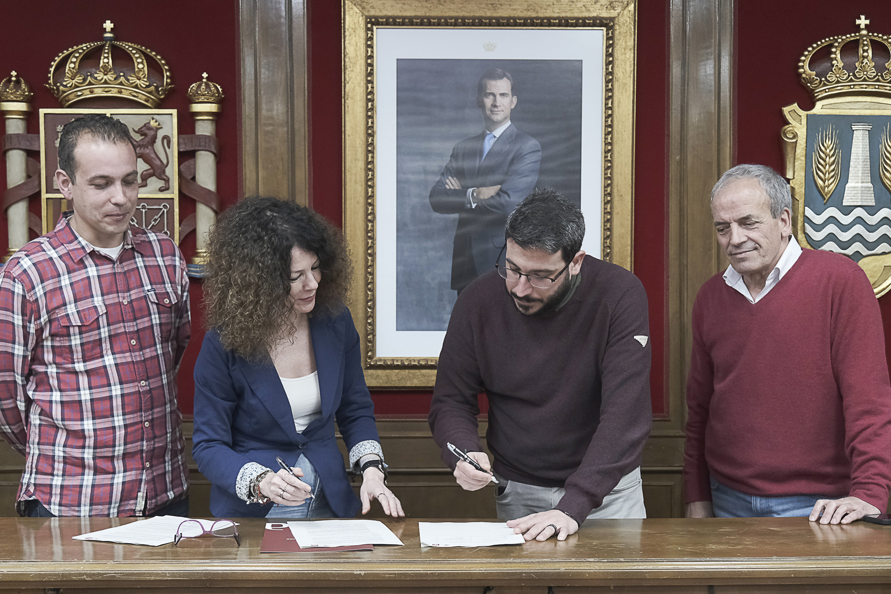 Dos momentos de la firma. Fotografías: Ayuntamiento de Azuqueca