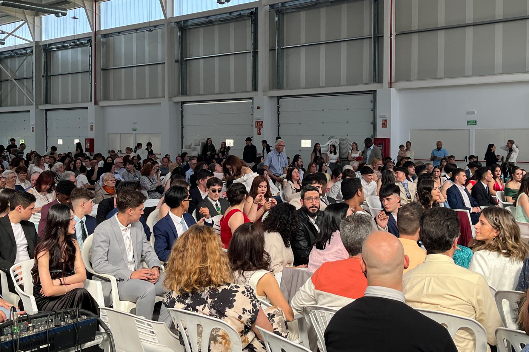 Para la celebración de las graduaciones, el Ayuntamiento cedió varios espacios municipales. “Siempre estamos abiertos a escuchar las necesidades y las sugerencias de nuestros centros y, dentro de nuestras posibilidades, colaborar y dar respuesta a esas peticiones”, apunta el alcalde. En este sentido, el Ayuntamiento puso a disposición del IES Arcipreste de Hita el equipamiento de La Caja. “Desde marzo, contamos con este espacio polivalente, de 1.300 metros cuadrados, para albergar actividades de todo tipo, como esta graduación o la feria Azunexo; un recurso fundamental para reubicar eventos cuando el mal tiempo impide que se celebren en exterior, como pasó el sábado con la jornada solidaria a beneficio de la Asociación Española Contra el Cáncer en Azuqueca”.