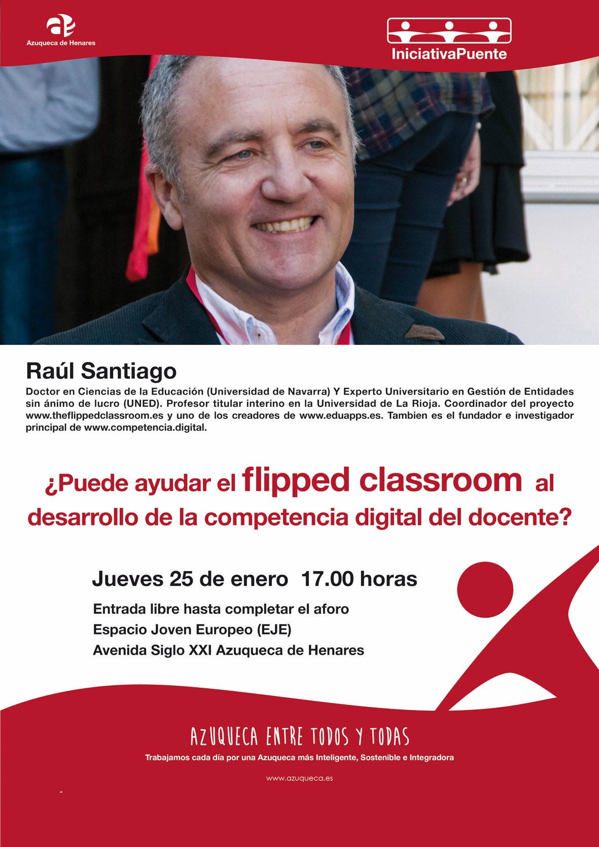 En el marco del programa municipal 'Iniciativa Puente', el Ayuntamiento de Azquueca de Henares organiza este jueves, 25 de enero, en el Espacio Joven Europeo (EJE) una nueva lección magistral sobre el Flipped Classroom o aprendizaje invertido, un modelo pedagógico que apuesta por el aprendizaje fuera del aula de determinados procesos y utilizar el tiempo de clase para potenciar otros métodos de adquisición y práctica de conocimientos.La sesión comienza a las 17 horas y va a contar con la participación de Raúl Santiago, doctor en Ciencias de las Educación de la Universidad de Navarra y experto universitario en gestión de entidades sin ánimo de lucro de la UNED, además de profesor titular interino en la Universidad de La Rioja, coordinador del proyecto www.theflippedclassromm.es y uno de los creadores de www.eduapps.es y fundador e investigador principal de AQUÍ) y en los cajeros ciudadanos. Además, el mismo día, en taquilla, una hora y media antes del inicio del pase.Cuentos y músicaAdemás, el viernes 26 de enero, a las 17 horas, Estrella Ortiz visita la Casita de los Cuentos Eva Ortiz con una sesión de narración oral titulada 'Cuentos y cosas de Rotundifolia'. La actividad se dirige a niños y niñas de 3 a 8 años y se requiere invitación.Por último, el sábado 27, la banda azudense 'Maese Patelín' presenta a las 21 horas, en la Casa de la Cultura, su primer disco 'Crucero', con el que celebran el 35 aniversario de esta formación (1982-2017). El álbum recopila sus temas más antiguos y algunas de sus nuevas composiciones. El precio es de 5 euros, con CD de regalo. También se pondrá a la venta este trabajo en formato CD (5 euros) y vinilo (15 euros). Las entradas están disponibles en la web municipal (pinche AQUÍ), en los cajeros ciudadanos y en taquilla, desde las 19:30 horas.