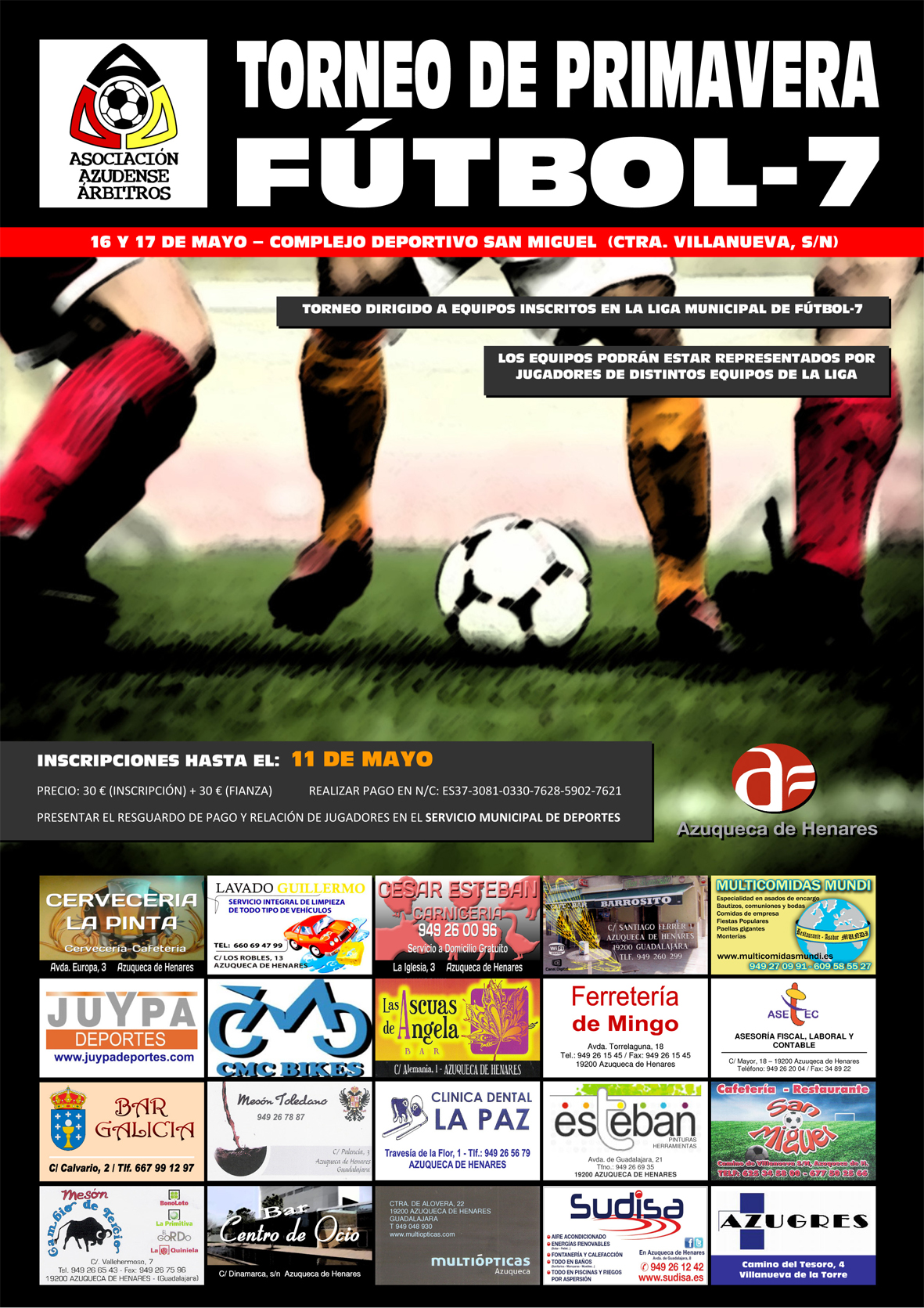 El calendario deportivo de Azuqueca de Henares contempla varias citas durante el mes de mayo. Además de la celebración de la Media Maratón (más información, pinchando aquí), el fin de semana del 16 y 17 de mayo se disputará el Torneo de Primavera de Fútbol 7 y el sábado 23, el XVIII Maratón de Balonmano. En ambos casos, la inscripción se puede formalizar en la oficina del Servicio Municipal de Deportes (SMD), ubicada en la primera planta del pabellón Ciudad de Azuqueca (tel. 949 27 75 28 y correo electrónico, aquí.