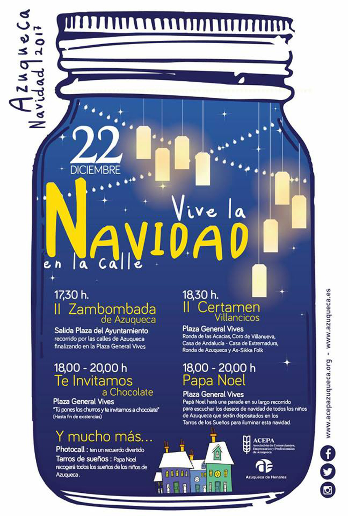 Este fin de semana, la agenda navideña de Azuqueca de Henares incluye numerosas propuestas. Por un lado, el Ayuntamiento y ACEPA (Asociación de Comerciantes, Empresarios y Profesionales de Azuqueca) impulsan en la tarde del viernes, 22 de diciembre, 'Vive la Navidad en la calle', una iniciativa con actividades familiares para dinamizar el comercio local. A las 17:30 horas, va a salir desde la plaza de La Constitución una zambombada, con recorrido por distintas calles de la localidad hasta llegar a la plaza General Vives. En este punto, de 18 a 20 horas, se instala un photocall y se invita a chocolate a los asitentes, al tiempo que Papá Noel recogerá los 'Tarros de sueños' con los deseos de los niños y niñas. Además, a las 18:30 horas se va a celebrar el II Certamen de Villancicos, con la participación de la Ronda de las Acacias, el Coro de Villanueva, las Casas de Andalucía y de Extremadura, la Ronda de Azuqueca y As-Sikka Folk.También el viernes, desde las 19 horas, el Espacio Joven Europeo acoge la Fiesta Off, una exhibición en la que participa el alumnado de las clases de los talleres municipal para jóvenes de Batería, Canto, Funky, Guitarra, Piano y teclados y Urban dance, además del grupo de K-pop del Espacio de Baile, participan en. Más tarde, a las 20:30 horas, la Banda de Música de Azuqueca ofrece su tradicional concierto de Navidad. La entrada es libre y el público asistente puede entregar un donativo a la entrada para colaborar con un proyecto de Manos Unidas centrado en la agricultura sostenible para familias campesinas de la localidad de Chaglla (Perú).Plaza NavideñaLa Plaza Navideña, por su parte, amplía su oferta con hinchables desde el viernes y hasta el viernes (precio: 1,50 euros) y con dos sesiones de cuentos el sábado, 23 de diciembre, a las 12:30 y a las 17:30 horas. Se mantiene la pista de hielo (viernes, de 9:30 a 14:30 y de 16:30 a 23 h., sábado, de 11 a 23 h., domingo, de 11 a 14 h., y lunes, de 12 a 22 h.), talleres, tiovivo, jumping, el tren navideño y los puestos de chocolatería, castañas y tetería.Villancicos y guitarraEste jueves, 21 de diciembre, a las 19:30 horas, el taller municipal de Guitarra del profesor Álex del Río ofrece un festival en la Casa de la Cultura. Además, desde las 19 horas, el CEPA Clara Campoamor acoge el IX Certamen de Villancicos que incluye la actuación de la Ronda de Azuqueca, el grupo de ADA, la Casa de Extremadura, la Rondalla Acacias, la Ronda de Peñalver y la Ronda de Atanzón. Al acabar, a las 21 horas, se ofrecerá una degustación de los productos culinarios elaborados por el alumnado del ciclo de cocina y gastronomía.