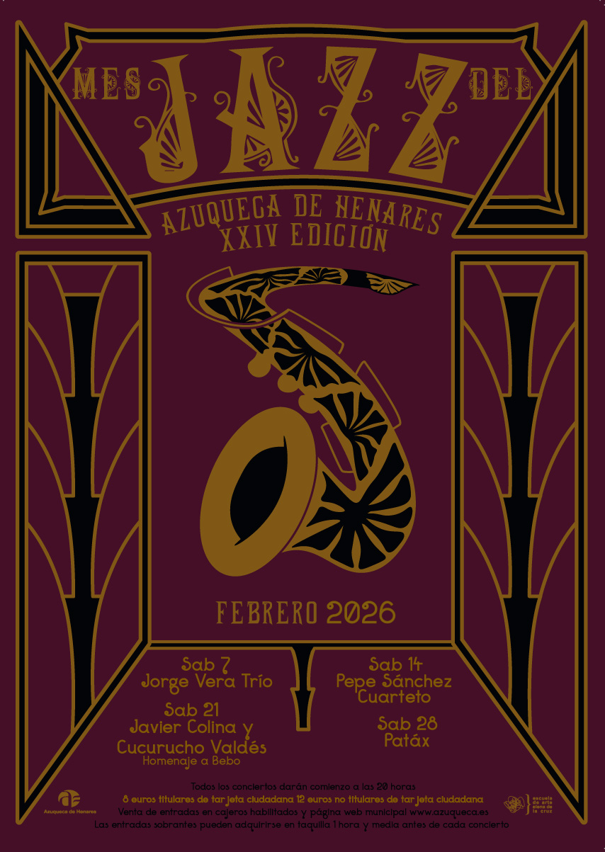 Como cada año, el Ayuntamiento de Azuqueca de Henares y la Escuela de Arte Elena de la Cruz de Guadalajara establecen una colaboración para el diseño del cartel del Mes del Jazz de nuestra localidad. El alumnado de la Escuela realiza una serie de carteles, de entre los cuales se elige aquel que finalmente será la imagen del evento. Cada uno de los diseños presentados desarrolla un estilo diferente y personal que deja ver el buen trabajo realizado por estos/as jóvenes diseñadores/as.