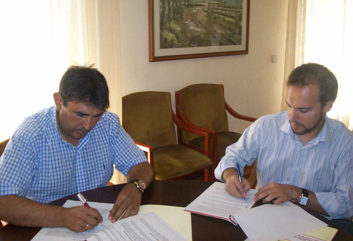 El alcalde azudense, Pablo Bellido, y Julián García Ruiz, de la empresa constructora Codigar, han firmado el contrato para ejecutar las obras de remodelación de la parte posterior de El Foro. "Se trata de un proyecto para el que contamos con el apoyo económico del Injuve [Instituto de la Juventud de España]", recuerda el primer edil, quien ha destacado que la actuación prevista va a permitir "el aprovechamiento de un espacio que ahora mismo no se podía utilizar porque no reúne condiciones".