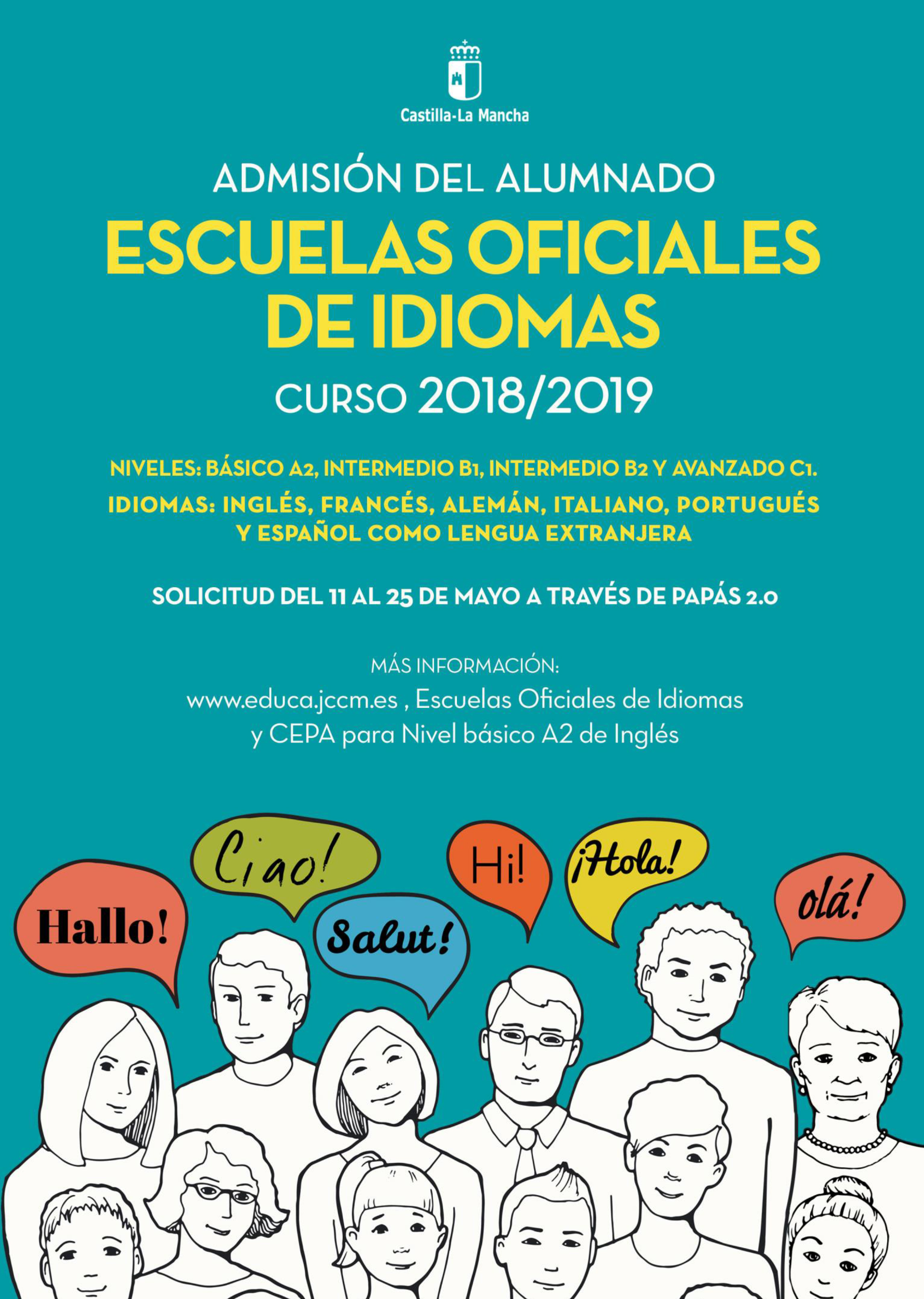 Hasta el viernes de la próxima semana, día 25 de mayo, se mantiene abierto el plazo de admisión de nuevo alumnado para el próximo curso en la extensión de Azuqueca de la Escuela Oficial de Idiomas. La tramitación de las preinscripciones se debe hacer de manera electrónica, a través de la plataforma 'Papás 2.0' de la Junta de Comunidades de Castilla-La Mancha. La información sobre el procedimiento se puede consultar en www.eoiguada.es. Como novedades de cara al curso que viene, se incorpora a la Extensión de Azuqueca el nivel C1 de inglés (este curso se ha impartido desde A1 a B2) y en francés la oferta se amplía y se ofrecen enseñanzas desde A1 a B2 (hasta ahora, se impartían A1 y A2). Las enseñanzas de la Escuela Oficial de Idiomas se dirigen a mayores de 16 años para los idiomas cursados en Educación Secundaria Obligatoria. Además, los mayores de 14 años -cumplidos en 2018-, podrán acceder a las enseñanzas de un idioma distinto al cursado en la Educación Secundaria Obligatoria como primera lengua extranjera. La prueba de nivel que da acceso a todos los cursos se realizará en junio y, en el caso de que hubiera vacantes, también en septiembre.Deben realizar el trámite de inscripción quienes deseen incorporarse a los estudios, pero también los alumnos que deseen pasar de modalidad libre a oficial, así como los procedentes de 'That's English' que quieran pasar a presenciales. También deben realizar ahora este trámite quienes estén cursando un idioma y quieran comenzar sus estudios en otro, los antiguos alumnos que quieran reanudar sus estudios y los que durante este curso hayan perdido la oficialidad o hayan anulado su matrícula.