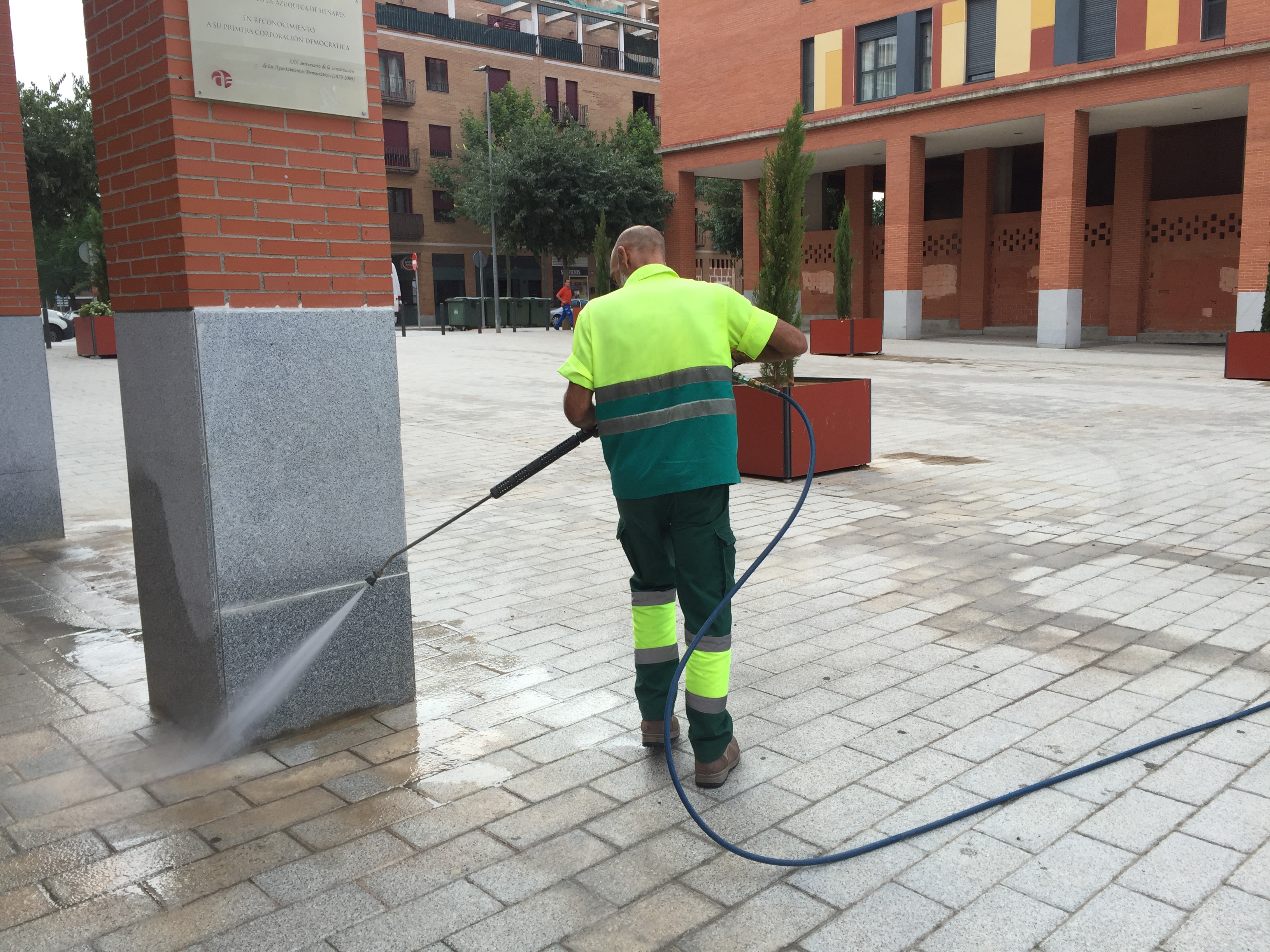 Esta semana se está llevando a cabo una intervención especial de limpieza en la Plaza 3 de Abril. Se trata de la respuesta a las numerosas quejas vecinales recibidas en el Ayuntamiento, en las que se alertaba del problema de malos olores y suciedad que los orines de los perros estaban generando en los soportales de la plaza.Un equipo de alrededor de 12 personas -integrado por personal del Plan Extraordinario por el Empleo y de la plantilla municipal- se está encargando de limpiar cada una de las columnas de la Plaza 3 de Abril, lugar elegido por muchos dueños incívicos para dejar a sus perros orinar. Se están retirando los restos de orines con trabajo manual, para después reforzar con la hidrolimpiadora del servicio municipal de limpieza Viaria.Para intentar que el estado de higiene se mantenga más tiempo, esta semana se está aplicando en las columnas, esquinas y rincones de la Plaza 3 de Abril, el líquido repelente 'Splash Back'. El líquido hará que los orines salpiquen, generando molestias a los infractores y además impedirá que vuelva a penetrar en la superficie, evitando los malos olores y facilitando posteriormente su limpieza mediante baldeo."Hemos mantenido numerosos contactos con vecinos y vecinas de esta zona y efectivamente hemos detectado que estas malas prácticas de algunos dueños de perros estaba generando un problema importante para la convivencia en esta emblemática plaza de la ciudad", ha señalado el concejal de Limpieza Viaria, Santiago Casas. "Por ello estamos abordando esta intervención especial con la que pretendemos retirar la suciedad y los malos olores de los soportales, puesto que por aquí transitan muchas familias con niños pequeños y personas mayores paseando".Desde el Ayuntamiento se insiste a la ciudadanía en respetar las normas de convivencia destinadas a mejorar el estado de bienestar de todas y todos en la ciudad. "Queremos recordar a los dueños que está prohibido que los perros defequen o miccionen en las esquinas de los edificios, los soportales o las columnas como las de esta plaza", apunta el concejal. Según se recoge en el Artículo 33 de la Ordenanza municipal Reguladora de la Tenencia y Protección de Animales: "El dueño o tenedor del animal deberá aportar las medias necesarias para evitar que ensucie las vías y espacios públicos urbanos".Policías de paisanoCon el objeto de incrementar el control y la vigilancia sobre las conductas poco cívicas de los dueños de perros, el Ayuntamiento ha solicitado un nuevo permiso a la Subdelegación del Gobierno para que agentes de Policía Local de Azuqueca puedan patrullar la ciudad de paisano. La última actuación que se llevó a cabo con policías de paisano permitió sancionar a cerca de un centenar de ciudadanos que no cumplieron con la norma y fueron localizados por los agentes llevando a cabo estas malas prácticas con sus perros.