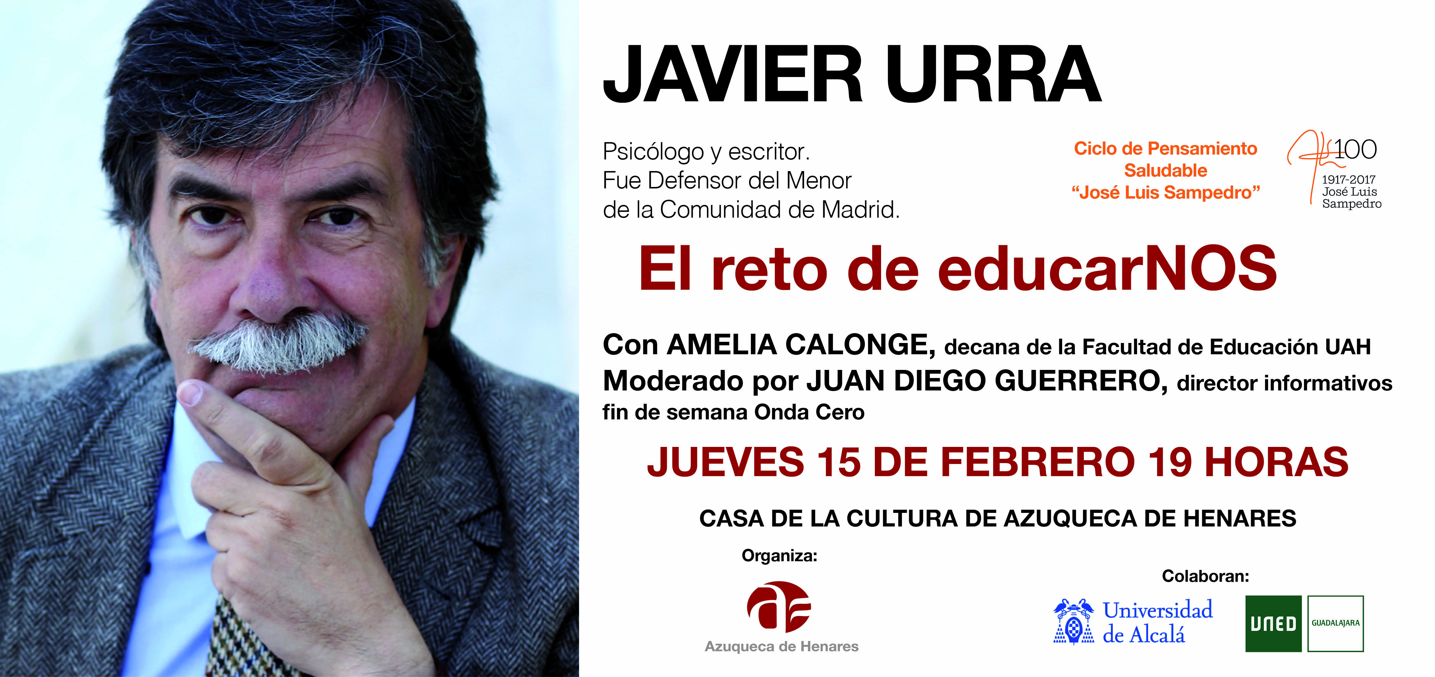 El Ayuntamiento de Azuqueca de Henares organiza el 15 de febrero una nueva actividad incluida en el Ciclo de Pensamiento Saludable 'José Luis Sampedro'. En esta ocasión, Javier Urra, psicólogo, escritor y Defensor del Menor de la Comunidad de Madrid entre 1996 y 2001, hablará sobre 'El reto de educarNOS', en un acto en el que estará acompañado de la decana de la Facultad de Educación de la Universidad de Alcalá y que moderará el director de informativos fin de semana de Onda Cero, Juan Diego Guerrero. La conferencia se desarrollará en la Casa de la Cultura, a las 19 horas, y la entrada es libre. Colaboran con el Ayuntamiento la Universidad de Alcalá y la UNED.El Ciclo de Pensamiento Saludable José Luis Sampedro se puso en marcha en mayo de 2017 para rendir homenaje al autor, pensador y humanista, coincidiendo con el centenario de su nacimiento. Ya en su presentación, el alcalde anunciaba la continuidad en el tiempo de las propuestas organizadas en el marco del ciclo. La conferencia de Urra es la cuarta de las programadas hasta el momento. Las anteriores han traído hasta Azuqueca a los periodistas Arsenio e Ignacio Escolar, al también periodista y viajero Javier Reverte, además de al reportero gráfico Víctor López y al veterano periodista Diego Carcedo.