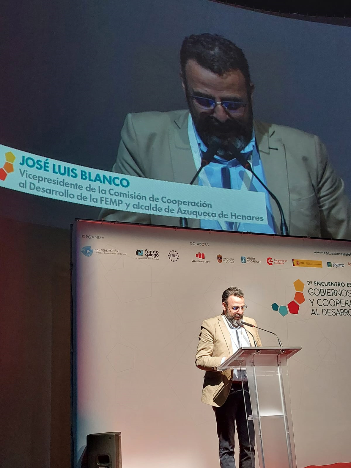 El alcalde de Azuqueca de Henares y vicepresidente de la Comisión de Cooperación al Desarrollo de la FEMP (Federación Española de Municipios y Provincias), José Luis Blanco, asiste al segundo Encuentro Estatal de Gobiernos Locales y Cooperación Internacional al Desarrollo, que se está celebrando en Lugo y ha contado con la presencia de la Secretaria de Estado de Cooperación Internacional, Pilar Cancela.