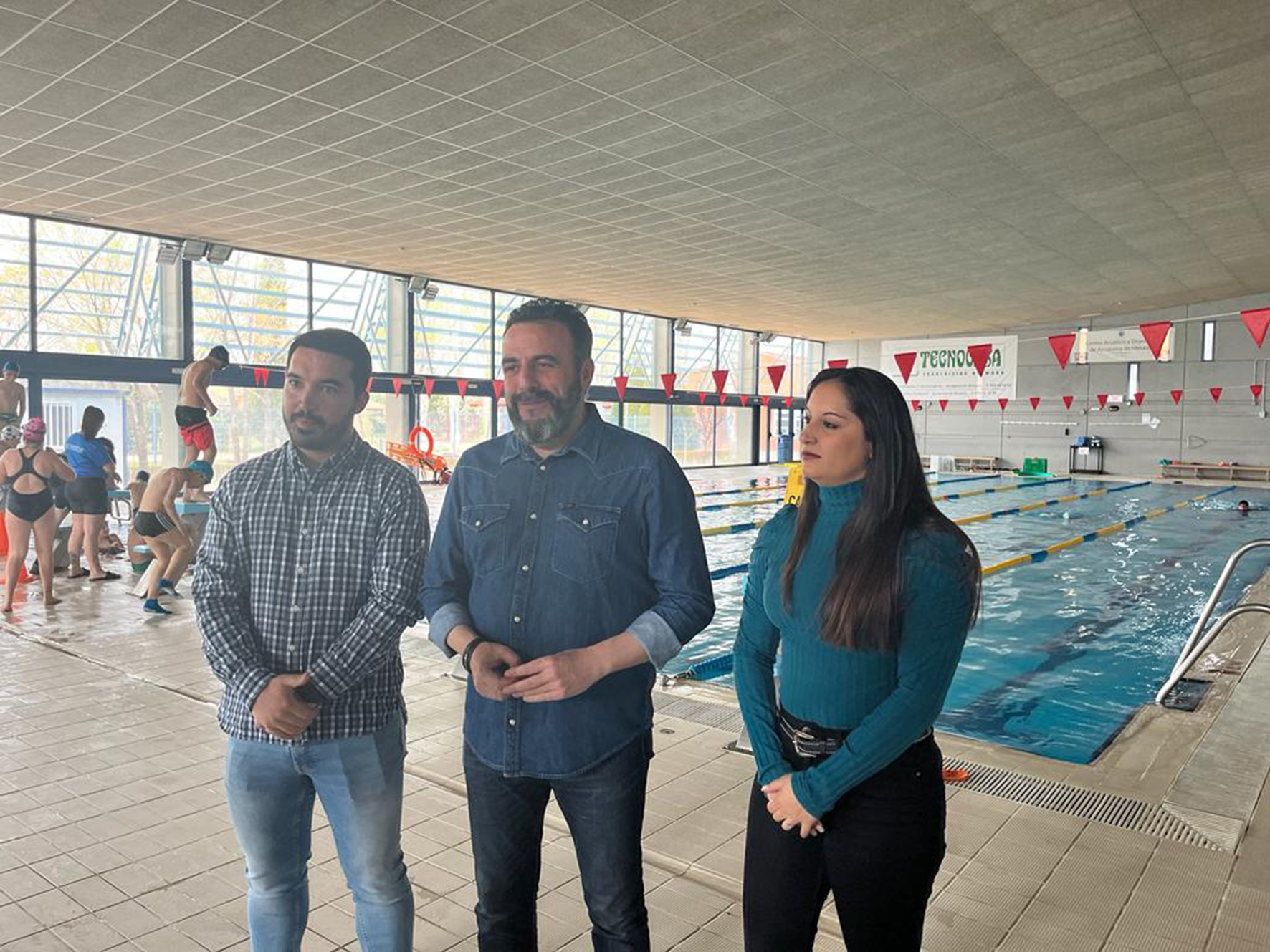 El alcalde azudense, José Luis Blanco, ha destacado que “más de 700 niñas y niños de los colegios e institutos de Azuqueca acuden de manera gratuita cada mes a la piscina climatizada, gracias al programa puesto en marcha por el Ayuntamiento”. Blanco ha hecho estas manifestaciones durante una visita a las instalaciones este viernes, para comprobar el funcionamiento de la iniciativa, que arrancó el pasado 13 de marzo, en compañía de la concejala de Educación Global, Susana Santiago, y el edil de Retos Deportivos, Enrique Pérez de la Cruz.