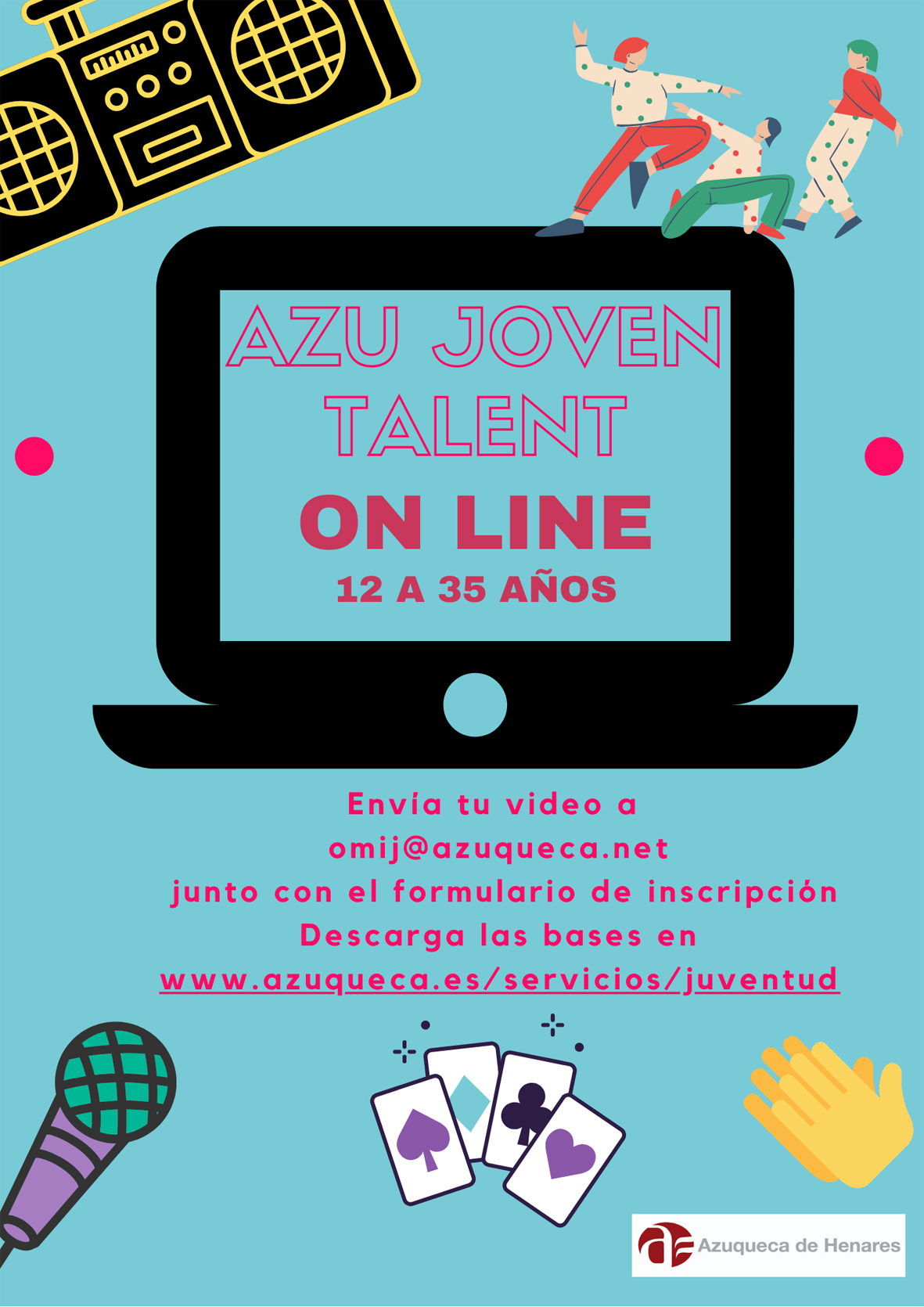 El Ayuntamiento de Azuqueca de Henares impulsa el concurso 'AzuJoven Talent Online' para "dar a conocer a jóvenes del municipio que destacan por su creatividad artística, musical, espíritu emprendedor, capacidad innovadora o superación personal", según recogen las bases (se pueden consultar, pinchando AQUÍ).La convocatoria, que se adapta a la situación de prevención del contagio de la COVID-19, se dirige a jóvenes empadronados en Azuqueca y con edades comprendidas entre los 12 y los 35 años. Las personas interesadas pueden participar de manera individual o en grupo y deben enviar, junto con la solicitud (pinche AQUÍ para descargarla), un vídeo con su actuación y una duración de 1 a 2 minutos al coreo electrónico