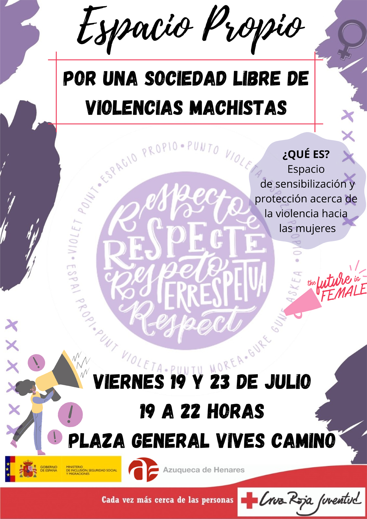 Con la colaboración del Ayuntamiento de Azuqueca de Henares, Cruz Roja Juventud va a desarrollar en la plaza del General Vives su proyecto Espacio Propio los viernes día 16 y 23 de julio, de 19 a 22 horas. "Se trata de un proyecto de sensibilización y prevención de la violencia machista y, para ello, se instala un punto libre de violencias machistas", explica la concejala de Igualdad de Oportunidades, Piedad Agudo, quien destaca que "se ha elegido esta ubicación para conseguir un mayor impacto ya que es una zona peatonalizada, de ocio y fiesta para jóvenes y con mucha afluencia de público".Espacio Propio se dirige a jóvenes víctimas o potenciales víctimas de cualquier tipo de manifestación de violencia en espacios comunitarios y el objetivo es mejorar el bienestar integral de estas mujeres. Para ello, Cruz Roja Juventud organiza distintas dinámicas con las personas que se acerquen a este punto: pirámide de relación saludable frente a una relación tóxica, pasapalabra, trivalina (tarjetas de verdadero y falso que invitan a la reflexión), medición de comportamientos y actitudes y déjame que te cante (análisis de canciones sexista). Asimismo, se ofrece información sobre las agresiones sexistas y sexuales, sobre el consentimiento sexual, la prevención de estas actitudes y cómo actuar ante una agresión.La concejala de Igualdad de Oportunidades destaca la importancia de acciones de este tipo. "Lamentablemente, hay estudios que confirman el aumento de comportamientos y de agresiones machistas en la población juvenil y, por eso, resulta fundamental llevar a cabo acciones de sensibilización, prevención y educación con este colectivo", señala.