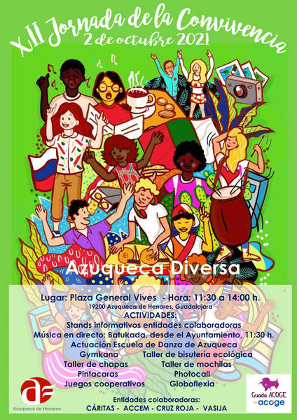 El Ayuntamiento de Azuqueca de Henares recupera este sábado, 2 de octubre, la edición número 12 de la Jornada de la Convivencia. "El año pasado, debido a la situación sanitaria de la COVID-19, no pudimos organizar este evento, que volvemos a celebrar ahora bajo el lema 'Azuqueca diversa' y donde se ofrece información y propuestas de ocio y culturales para todas las edades", explica el concejal de Derechos y Libertades, David Pinillos.