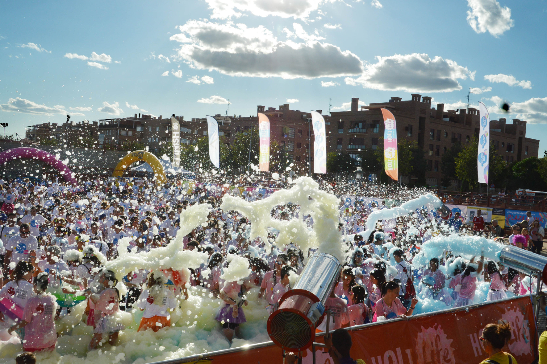 Azuqueca de Henares acoge este domingo, 27 de mayo, una nueva edición de la 'Spume Run', la carrera de espuma de colores dirigida a un público juvenil y familiar. La salida se ha programado a las 11 horas desde el Recinto Ferial, donde finaliza el recorrido de 5 kilómetros de distancia y con varios puntos de lanzamiento de espuma de color rosa, amarillo, azul y verde. Antes del inicio, desde las 10 horas, habrá iniciación y, según lleguen los corredores y corredoras, se celebrará una fiesta con más espuma, polvos de neón, música y otras sorpresas. La inscripción se mantiene abierta en la página web spumerun.es y el precio es de 12 euros en la modalidad individual (mayores de 13 años), 11 euros por persona para grupos (a partir de 4 personas), 10 euros para infantil (8 a 12 años) y 1 euro para los menores de 7 años. En todos los casos, se incluye camiseta y dorsal.La concejala de Juventud, Carmen Luque, destaca que "es una propuesta de ocio '0,0', sin violencia ni alcohol, en la que se fomenta la diversión y el deporte con amigos o la familia". El Ayuntamiento de Azuqueca colabora con el grupo Cope en esta actividad, que organiza A38 Servicios Plenos.Festival 4x4Por otra parte, también el domingo, de 10 a 17 horas, la Asociación Alcarria 4x4, con la colaboración del Ayuntamiento, organizan un Festival de vehículos 4x4 en los terrenos situados detrás del Hotel Azuqueca. La jornada comienza a las 10 horas con una exhibición de vehículos de radiocontrol 4x4, seguida de la V KDD 4x4 (11 horas) y ya por la tarde, a las 17 horas, entrega de trofeos. Durante el veento, se van a vender tickets, al precio de 3 euros, para una paella solidaria (toda la recaudación se destinará a la asociación APANAG). Las inscripciones se pueden formalizar desde las 9 horas en el Hotel Azuqueca.