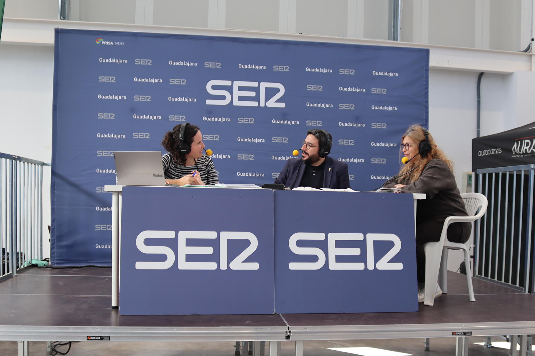 El alcalde de Azuqueca de Henares, Miguel Óscar Aparicio, y la concejala de Fiestas, Charo Martín, han participado este jueves, 11 de diciembre, en el programa especial Hoy por Hoy que la Cadena SER Guadalajara ha emitido desde el edificio multifuncional La Caja con motivo de la inauguración de la primera Feria del Automóvil de AuraCar, que se desarrollará en la ciudad hasta el domingo 14.