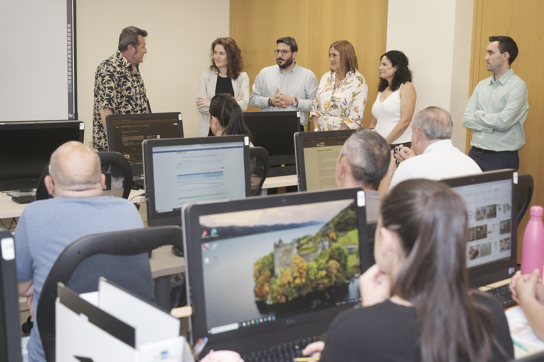 De izquierda a derecha, el profesor del taller, la viceconsejera, el alcalde, la concejala de Empleo, la delegada provincial y el jefe del servicio provincial de formación