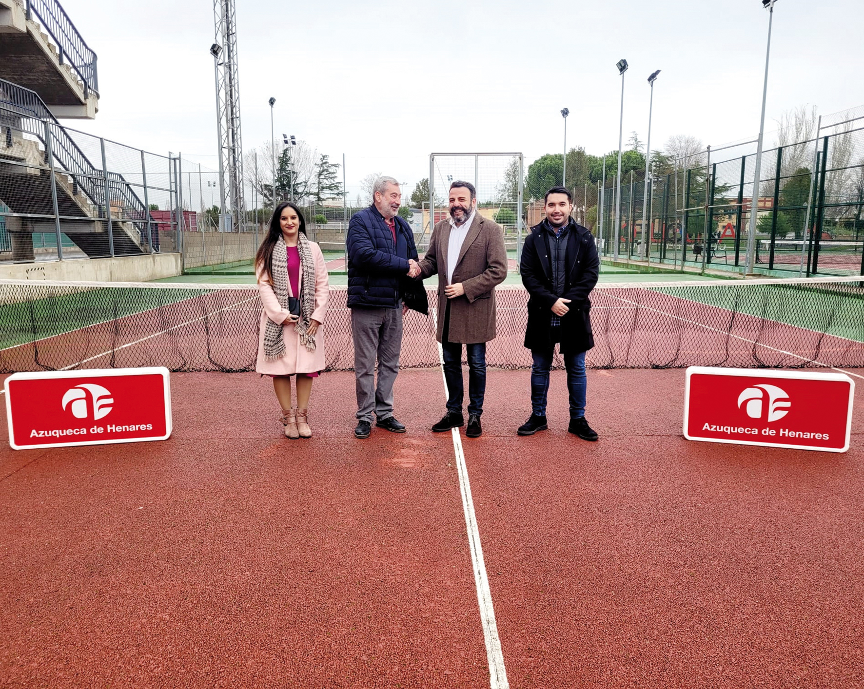 La firma, celebrada en las pistas de tenis del complejo San Miguel, ha contado con la presencia de Alfonso Segura, presidente del Club de Tenis de Azuqueca de Henares; la coordinadora del Equipo de Gobierno, Susana Santiago, y el concejal de Retos Deportivos, Enrique Pérez de la Cruz, quien ha anunciado que se van a mejorar las pistas de tenis del complejo San Miguel.