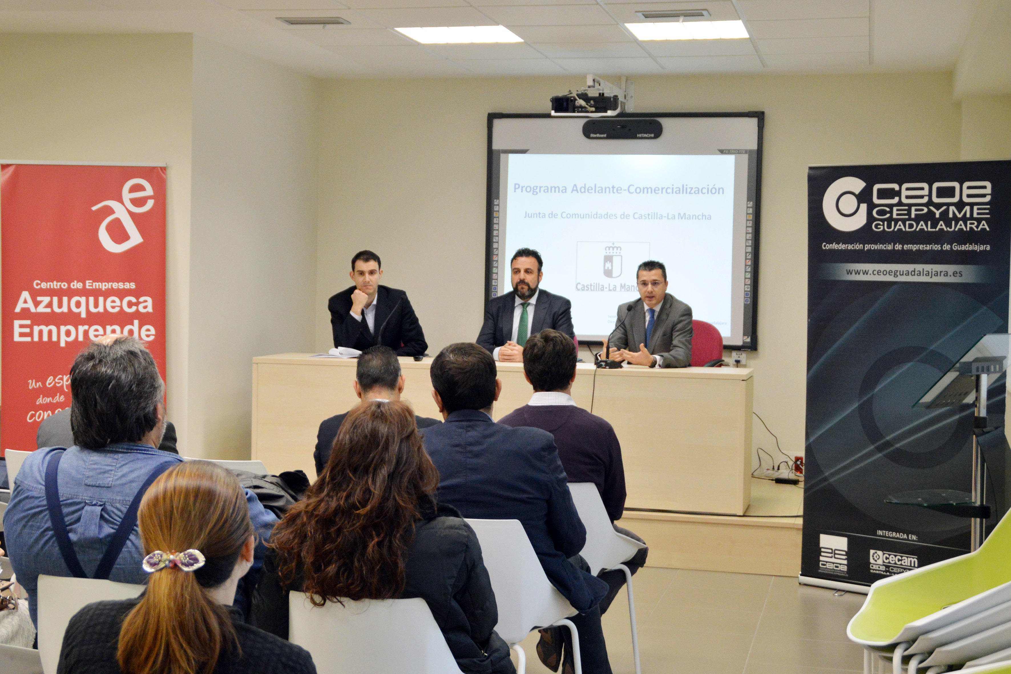 El alcalde de Azuqueca de Henares, José Luis Blanco, ha inaugurado la sesión informativa que han organizado la Junta de Comunidades de Castilla-La Mancha y CEOE-Cepyme en torno a la orden regional de ayudas 'Adelante Comercialización', en el Centro de Empresas Azuqueca Emprende. Al acto han asistido el director provincial de Economía, Empresas y Empleo, Daniel Viana, y el secretario general de CEOE-Cepyme Guadalajara, Javier Arriola.Varios empresarios de Azuqueca y de su área de influencia han acudido a esta cita en la que el jefe de Servicio de Incentivación Empresarial, Óscar Serranos, ha sido el encargado de desglosar los requisitos para acogerse a la orden de ayudas ‘Adelante Comercialización’, puesta en marcha por el Gobierno regional con el objetivo de mejorar la competitividad y la capacidad de comercialización de las empresas de la región."Quiero animaros a incrementar vuestro valor añadido a través de esta línea de ayudas que os permitirá ser más competitivos, llegar a más clientes potenciales y, en definitiva, tener más oportunidades de éxito. Un éxito que será el vuestro y el de todos nosotros", ha señalado el alcalde durante su intervención. José Luis Blanco ha recordado las buenas expectativas económicas que existen en Azuqueca, que están siendo complementadas con diferentes acciones destinadas a reducir los niveles de desempleo, que en 2016 retornaron a niveles de 2009. "En Azuqueca han sido 200 personas las que han tenido una oportunidad a través del Plan Extraordinario por el Empleo, 60 gracias al Plan Garantía +55, otras 40 han participado en las dos lanzaderas solidarias por el empleo y el emprendimiento, y alrededor de un centenar han recibido algún tipo de acción formativa destinada a la mejora de su empleabilidad", ha indicado, tras recordar que la Junta ha invertido en políticas de empleo dos millones de euros en Azuqueca.