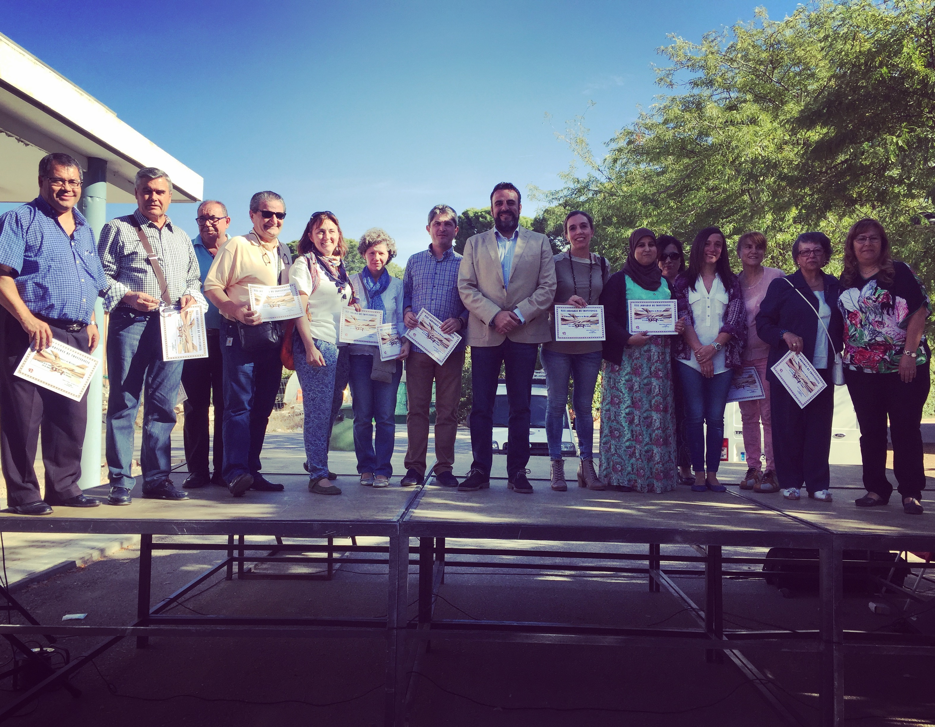 La 'VIII Jornada por la Convivencia' de Azuqueca de Henares se saldó con una importante asistencia de público. Alrededor de un millar de vecinos y vecinas de la localidad se acercaron al parque de La Quebradilla para ser partícipes de esta jornada en la que estuvieron presentes más de una veintena de colectivos sociales y culturales de Azuqueca.Además de las distintas actividades que se programaron a lo largo de todo el día, como talleres, baile, y diversas iniciativas lúdico-formativas, el alcalde del municipio, José Luis Blanco y la concejala de Cohesión Social, Elisa Cansado hicieron entrega de las distinciones a las personas que son un referente de convivencia en la ciudad.Este año, se destacó la labor de Juan José Gasanz, sacedorte de la Parroquia de la Santa Cruz que ha sido recientemente trasladado a una parroquia de Madrid, al conjunto de Protección Civil en Azuqueca de Henares, al CEPA Clara Campoamor, a Shanaae Isidi, de la Comunidad Musulmana, al Centro de Día para Mayores ‘Las Acacias’ y a la Asociación de Familiares Discapacitados de Azuqueca (ADA). También se reconoció la labor de la Asociación Guada Acoge y en concreto a José Lorenzo Paños como la persona que impulsó junto al Ayuntamiento la puesta en marcha de estas jornadas y a Jesús Ferreras, actual presidente de la asociación. Además se tuvo un cariñoso recuerdo y se distinguió, a título póstumo, a Mayte una trabajadora social de Cruz Roja Azuqueca, fallecida el año pasado. El alcalde de la localidad, José Luis Blanco, tras la entrega de los diplomas acreditativos, tuvo la oportunidad de volver a cambiar impresiones con estos colectivos sociales sobre las múltiples acciones que están llevando a cabo en el municipio. El primer edil destacó que “estas personas y colectivos que se han distinguido, lo han hecho por algo que es admirable para el resto de la población, por ser ejemplo de convivencia en el municipio”. “Un año más, estos reconocimientos, nos sirven para seguir destacando que Azuqueca de Henares es una ciudad ejemplar como modelo de convivencia”.La edil de Cohesión Social, Elisa Cansado, agradeció la implicación de todos los colectivos sociales y culturales, ya que con su “implicación” en estas jornadas han permitido que este día sea “un día de convivencia real”, y señaló la cohesión intercultural e intergeneracional de la población de Azuqueca de Henares para “favorecer nuevos conocimientos y de esta manera, enriquecernos”.Cansado aprovechó para agradecer un año más, la participación de los distintos colectivos sociales en la ‘VIII Jornada por la Convivencia’ y destacó especialmente la colaboración de ‘Guada Acoge’ como organizador, junto al Ayuntamiento de Azuqueca de este encuentro anual.Este año participaron en la jornada: ACCEM, ADA, ACADA, Clara Campoamor, AERFA, Buscando una esperanza, Caminando, Cáritas, las casas de Andalucía y Extremadura, la Comunidad musulmana de Azuqueca, el grupo La Jara, Cruz Roja, el coro de la parroquia San Miguel, Guadad Acoge, la asociación Nueva Ilusión, Pacha Mama (madre Tierra), la Ronda de Azuqueca y la Ronda de las Acacias y la asociación Vasija.