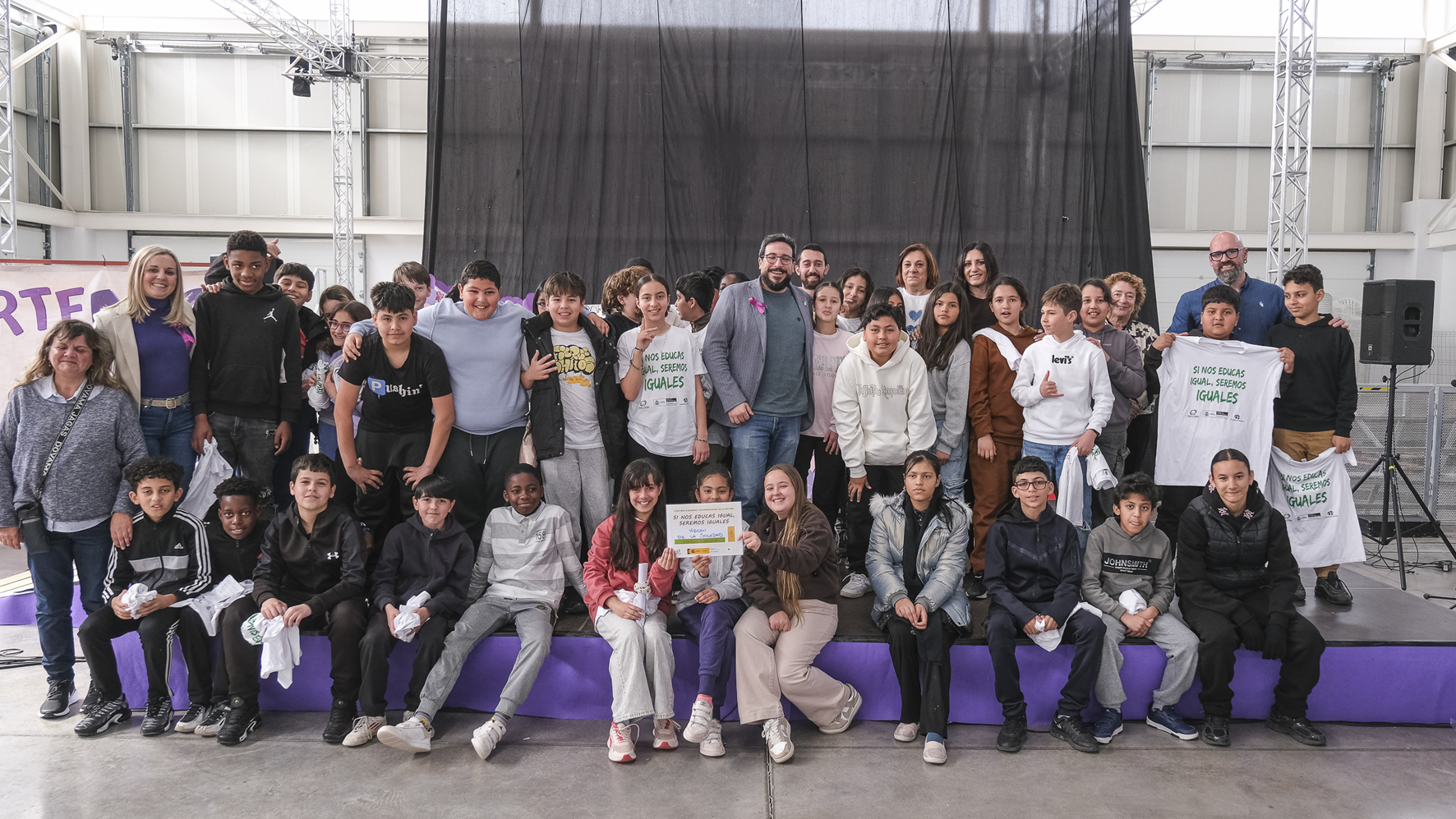 Dentro del programa del 8 de Marzo, Día Internacional de las Mujeres, el Ayuntamiento de Azuqueca de Henares ha celebrado en la mañana de este jueves día 5 el acto central: el concurso "8 de Marzo: Si nos educas igual, seremos iguales", en el que ha participado un total de 365 estudiantes de 6º de Primaria de los seis CEIP de la ciudad -La Paz, Maestra Plácida Herranz, Virgen de la Soledad, Siglo XXI, La Espiga y La Paloma-. El acto ha contado con la presencia del alcalde, Miguel Óscar Aparicio; la delegada provincial de Igualdad, Laura Gil; la primera teniente de alcalde, Yolanda Rodríguez; la tercera teniente de alcalde y concejala de Igualdad, Piedad Agudo; el edil de Relaciones Institucionales, David Pinillos, y la concejala del grupo municipal del PP, Laura Pérez.
