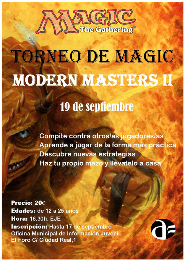 Los jóvenes con edades comprendidas entre los 12 y los 25 años que deseen participar en los torneos de cartas Magic y Yugi-Oh organizados por el Ayuntamiento y  que se celebrarán el próximo 19 de septiembre pueden formalizar ya su inscripción. La concejala de Juventud, Carmen Luque, ha recordado que "las plazas son limitadas y que la inscripción se mantiene abierta hasta el día 17 de septiembre, en la Oficina Municipal de Información Juvenil del Foro". En esta edición, los dos torneos cambian de ubicación y se celebrarán en la sala multiusos del Espacio Joven Europeo (EJE).En el caso de las cartas Magic, el precio de inscripción es de 20 euros, mientras la participación en Yugi-Oh lleva aparejada el pago de 1,5 euros.Propuestas de los jóvenesCarmen Luque ha destacado que estas dos actividades "surgen de las propuestas planteadas por los jóvenes en el LibrEspacio, un programa con el que el Ayuntamiento ayuda a que iniciativas juveniles puedan ser realidad". En este sentido, la edil recuerda que de este espacio -que abre los martes y miércoles de 16:30 a 18 horas- ha surgido también la celebración del I torneo juvenil de voley-playa, que se celebrará el día 12 de septiembre en la pista del San Miguel y cuyo plazo de inscripción también está abierto" (más información, AQUÍ). Para facilitar el desarrollo del torneo, se ofrece a los equipos inscritos que lo deseen la posibilidad de participar el viernes 11 de septiembre, desde las 17:30 horas, en una jornada de entrenamientos libres.