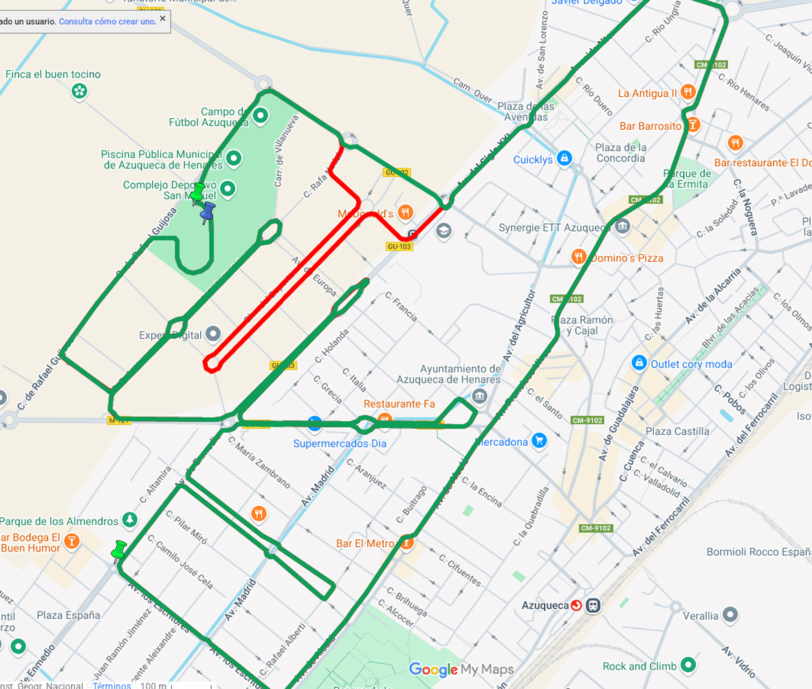 La carrera discurre por un circuito urbano por las calles de Azuqueca de una vuelta (10 kilómetros) o dos (media maratón) y tiene puntos de avituallamiento en los kilómetros 5, 10, 15 y meta. Desde la organización, se recomienda a los vecinos evitar las calles del recorrido mientras se desarrolla la carrera.