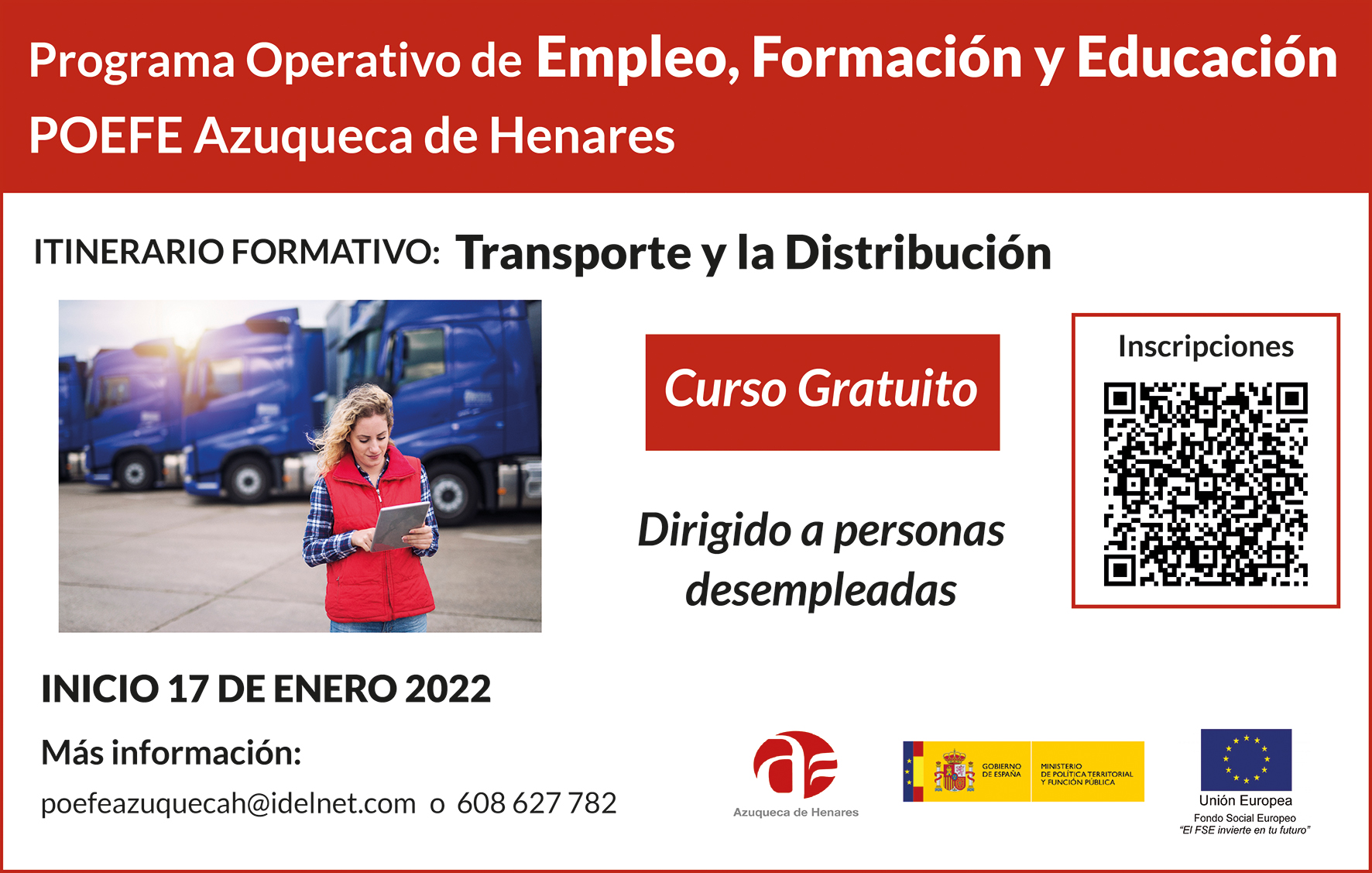 Ya está abierta la inscripción en dos nuevas acciones formativas incluidas en la segunda fase del Programa Operativo de Empleo, Formación y Educación de Azuqueca de Henares (POEFE). La primera de ellas, 'Organización y gestión de almacenes', de 450 horas, se desarrollará entre el 13 de enero y el 26 de mayo. La segunda, 'Transporte y distribución', de 500 horas, comenzará el 14 de enero y terminará el 9 de junio. Cada curso dispone de 15 plazas.