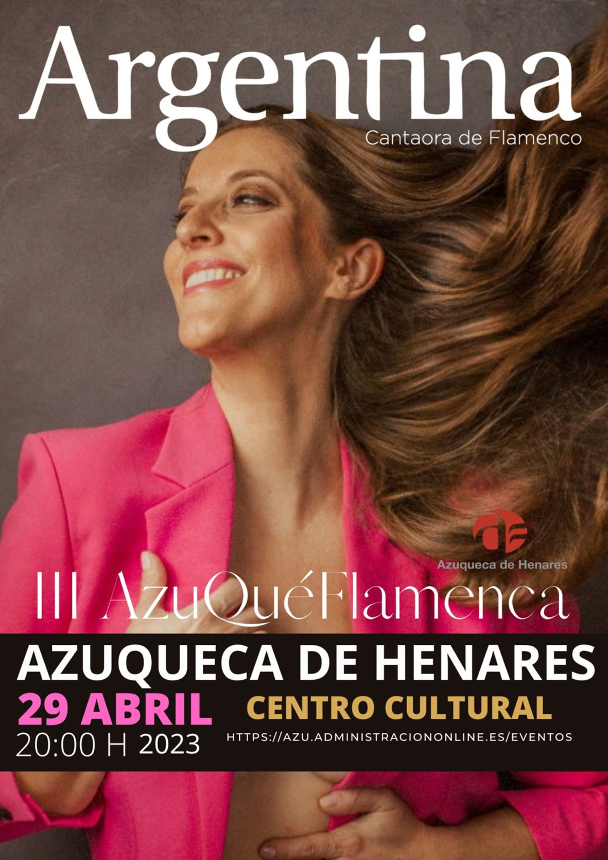 La artista Argentina visita este sábado, 29 de abril, Azuqueca de Henares en el marco de la tercera edición del festival AzuQUÉflamenca, organizado por el Ayuntamiento. La actuación comienza a las 20 horas en la Casa de la Cultura y las entradas se pueden comprar en esta página web (pinche AQUÍ) y en los cajeros ciudadanos. El precio es de 5 euros para titulares de la Tarjeta Ciudadana y de 8 euros sin este documento municipal.