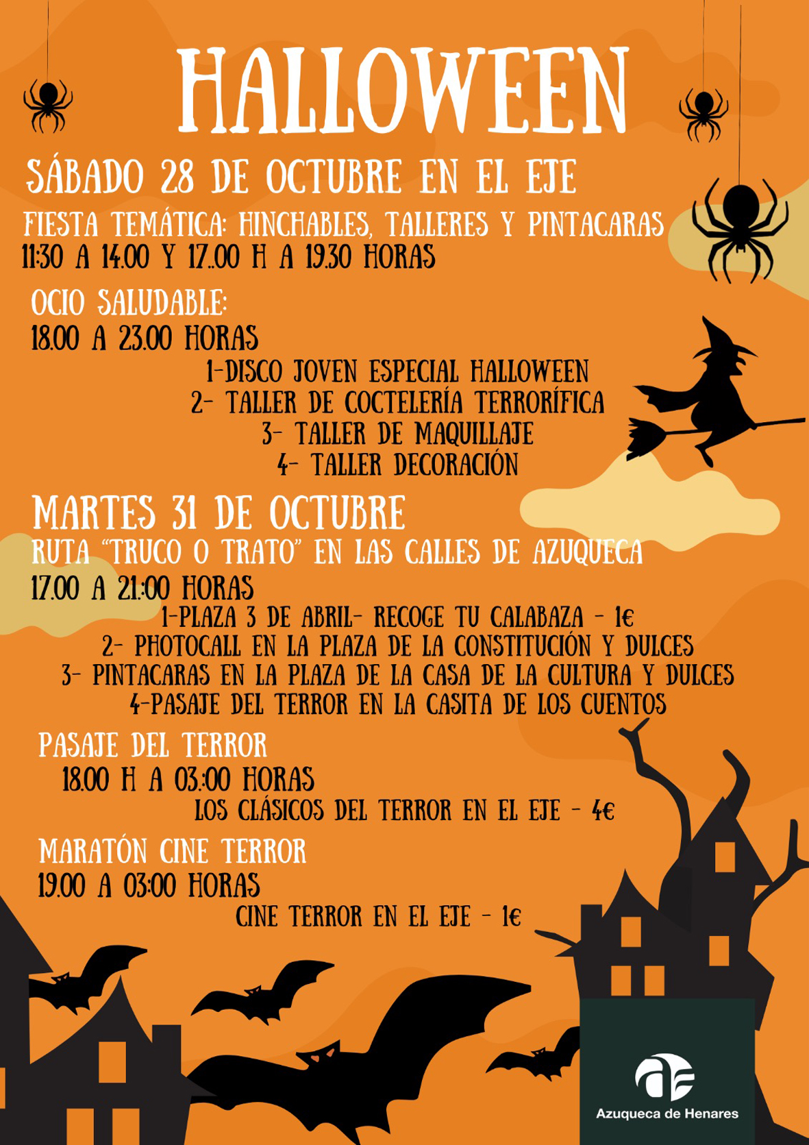 Con motivo de Halloween, que se celebra la noche del 31 de octubre, el Ayuntamiento de Azuqueca de Henares organiza distintas actividades adaptadas a la edad de los participantes. “Es una fiesta de origen anglosajón que cada año tiene mayor acogida, sobre todo, entre nuestros vecinas y vecinas más jóvenes y, por eso, desde el Ayuntamiento, hemos diseñado propuestas de ocio saludable para disfrutar en familia y con amigos”, avanza el alcalde, José Luis Blanco.