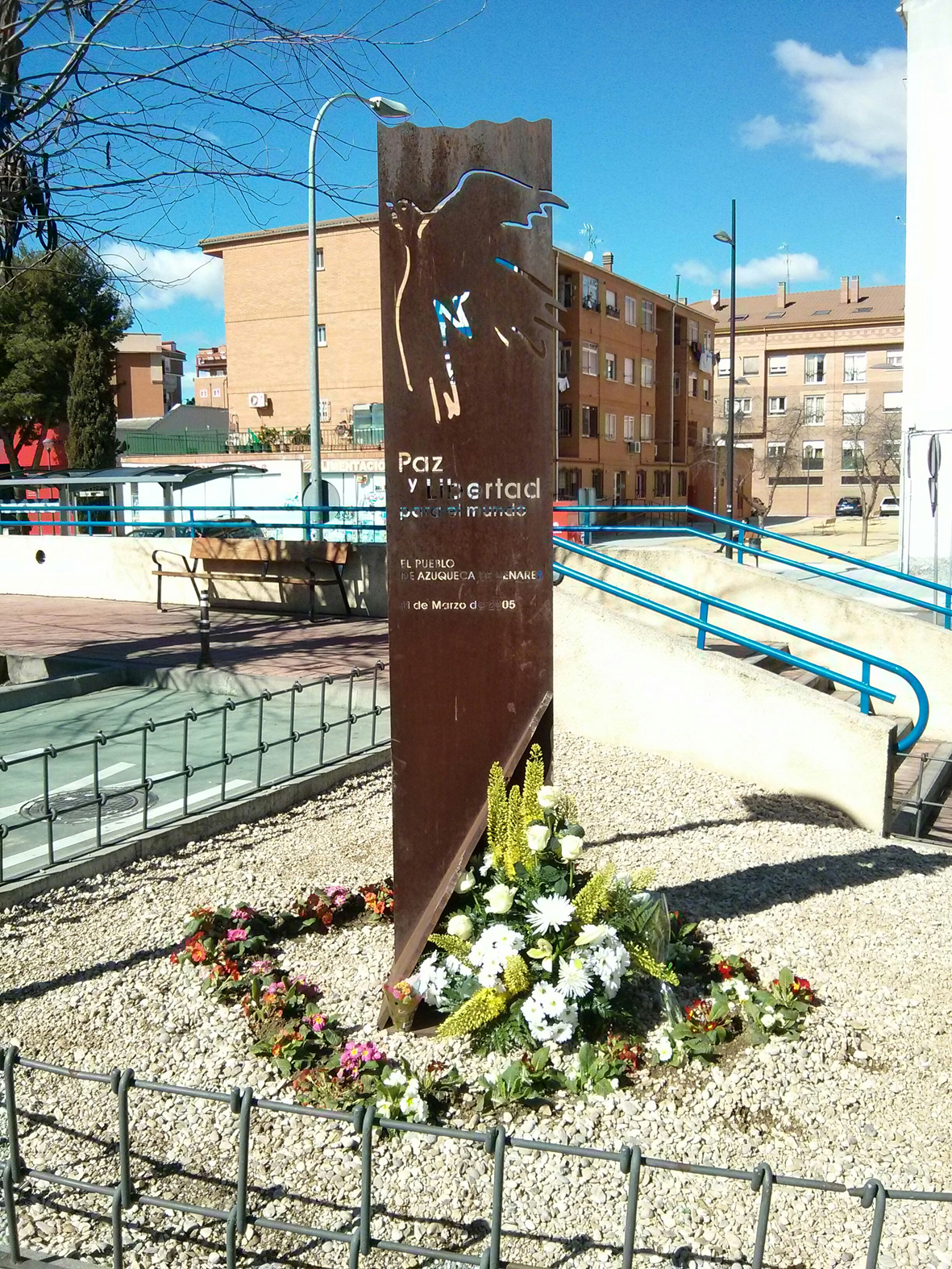 Cerca de medio centenar de personas han participado este mediodía en el acto celebrado junto al monolito de la estación de tren de Azuqueca de Henares en recuerdo a las víctimas de los atentados del 11 de marzo de 2004. El acto ha comenzado con cinco minutos de silencio, rotos por un aplauso, y, a continuación, el alcalde azudense, José Luis Blanco, acompañado por las portavoces de los grupos municipales del PSOE, Sagrario Bravo; PP, Aure Hormaechea; Ciudadanos, Silvia García, e IU-Ahora Azuqueca de Henares, María José Pérez, han depositado un centro de flores blancas a los pies del monolito. También se han sumado al homenaje otros concejales de la corporación y agentes de la Guardia Civil y la Policía Local.En los atentados del 11M, murieron 191 personas, de las que cinco eran vecinos de Azuqueca de Henares: María Fernández del Amo, Nuria Aparicio Somolinos, Eduardo Sanz Pérez, Mohamed Itaiben y José Gallardo Olmo. Como homenaje y recuerdo de las víctimas, el Ayuntamiento instaló en 2005 un monolito junto a la estación de tren y en el que se puede leer 'Paz y libertad para el mundo', bajo el perfil de una paloma. Además, en 2009, en la rotonda del aparcamiento de la estación, el Ayuntamiento instaló una placa con el texto 'En memoria de todas las víctimas del terrorismo. Siempre en nuestra memoria'.
