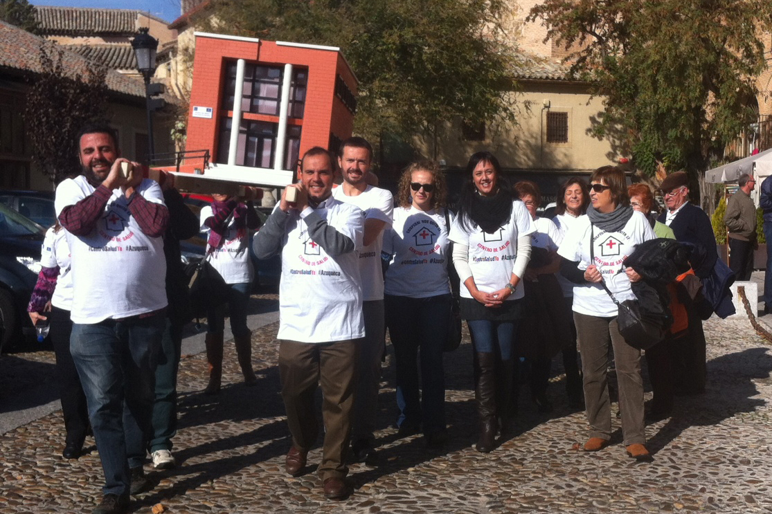 El alcalde de Azuqueca de Henares, Pablo Bellido, acompañado de los concejales del Equipo de Gobierno, de IU, del grupo de No Adscritos, de las asociaciones sanitarias del municipio y de un grupo de ciudadanos, se ha trasladado este jueves a Toledo para reclamar a la Junta de Comunidades el segundo Centro de Salud del municipio. La delegación azudense, que llevaba consigo una maqueta de grandes dimensiones que reproduce el antiguo Centro de Salud de Azuqueca, se ha desplazado hasta las proximidades del palacio de Fuensalida, sede de la presidencia del gobierno regional para dejar patente su malestar tras la paralización del proyecto para dotar a Azuqueca de un segundo centro sanitario. "Como la presidenta de la Junta y su gobierno ni responden al Ayuntamiento de Azuqueca ni nos visitan para conocer nuestras necesidades, hemos decidido hacerlo nosotros porque no nos vamos a resignar a ser el único municipio de la región de más de 20.000 habitantes con un solo Centro de Salud", ha explicado Bellido.El regidor ha recordado que el pasado verano, el Ayuntamiento supo a través del grupo municipal del PP, que la Junta de Comunidades se había desprendido de la propiedad del antiguo Centro de Salud, cuyas obras habían sido paralizadas tras las últimas elecciones autonómicas. De manera inmediata, el alcalde presentó en el registro de la Junta de Comunidades de Castilla-La Mancha un escrito solitando información oficial y reclamando el segundo Centro de Salud. "A fecha de hoy, no hemos recibido respuesta a ese escrito, como tampoco nos han respondido a ninguna de las numerosas cartas -más de una veintena- solicitando información o reuniones con el Gobierno regional". Pablo Bellido ha denunciado además los recortes que están afectando a numerosos servicios del Centro de Especialidades de Azuqueca y ha reclamado la firma del convenio con la comunidad de Madrid para la atención de los enfermos de Castilla-La Mancha.Durante su estancia en Toledo, el alcalde ha entregado en la sede del gobierno regional un nuevo escrito en el que se pide información a la Junta sobre la situación actual del segundo Centro de Salud y en el que se reclama que se retomen las obras. El alcalde solicita además una reunión con la presidenta regional, Dolores Cospedal, "al objeto de realizar las labores necesarias para que Azuqueca de Henares deje de ser el único municipio de la región con más de 20.000 habitantes que no cuenta, al menos, con dos centros de salud".