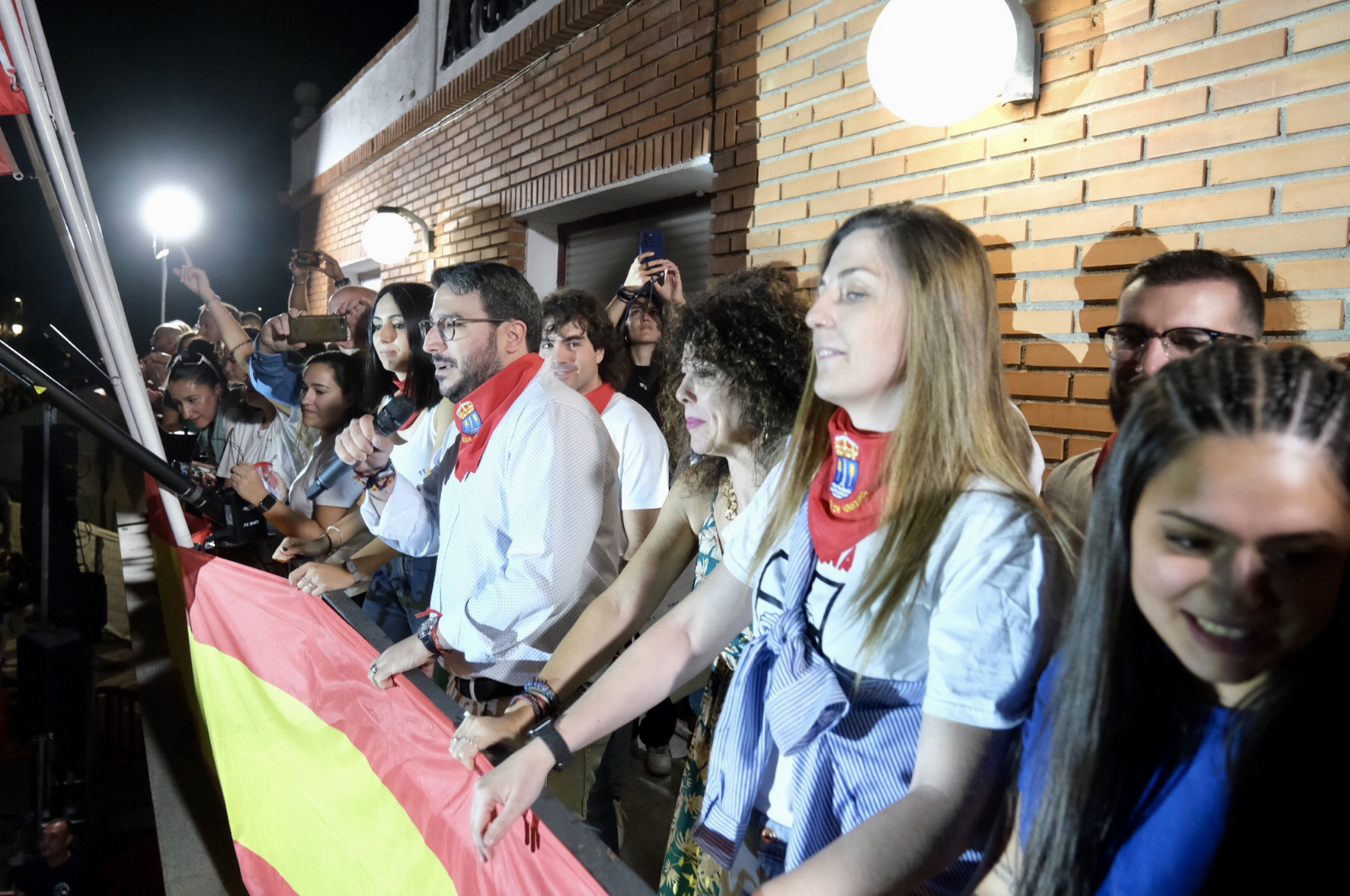 Los integrantes de Volvoreta han felicitado a sus compañeras del equipo femenino de fútbol sala. "Ser Populares es un honor, un privilegio, un orgullo", han dicho los jóvenes músicos, que han querido compartir el reconocimiento con las bandas y grupos que hacen música en la ciudad. Los integrantes de Volvoreta han reclamado el apoyo de las instituciones y han animado al "despertar de la juventud a la música de calidad". Durante su intervención desde el balcón del Ayuntamiento, han animado además a asistir al concierto que ofrecerán el próximo sábado en la carpa del Recinto Ferial.