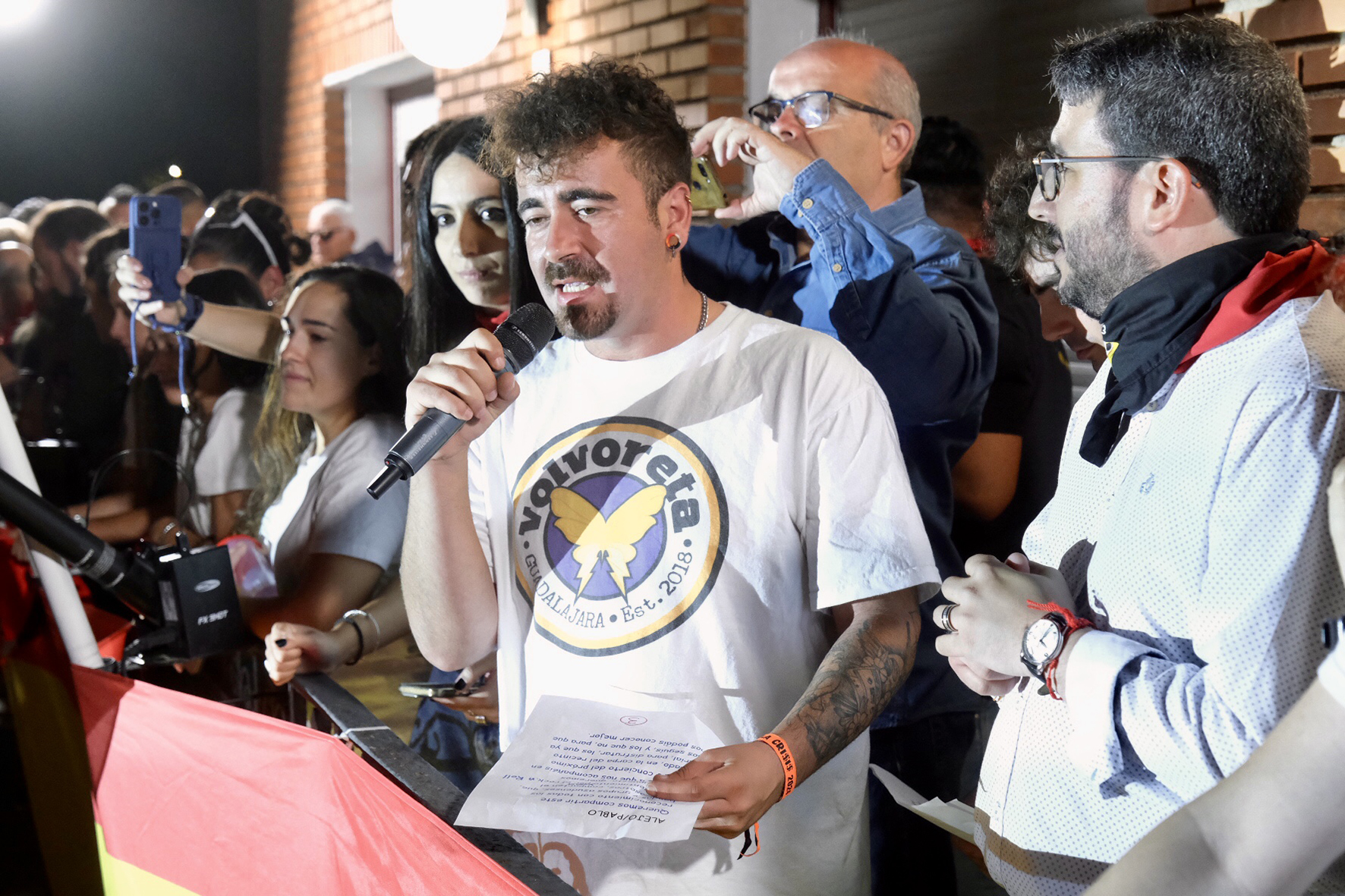 Antes de ceder la palabra a los Populares de las Fiestas, el equipo femenino de la Unión Deportiva Azuqueca Fútbol Sala y el grupo musical Volvoreta, el alcalde ha lanzado un "¡Viva Azuqueca! y un "¡Viva la Virgen de La Soledad!"