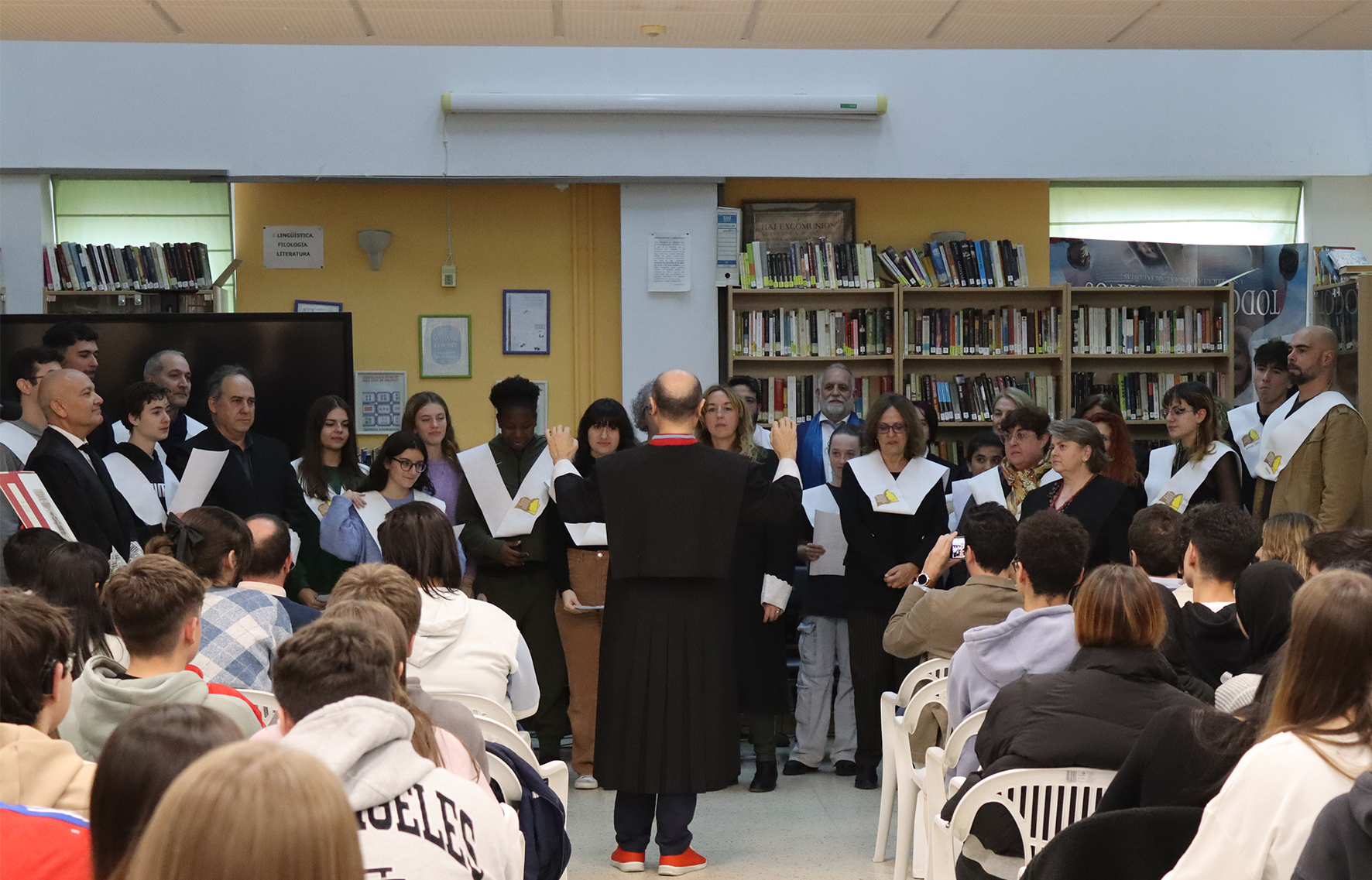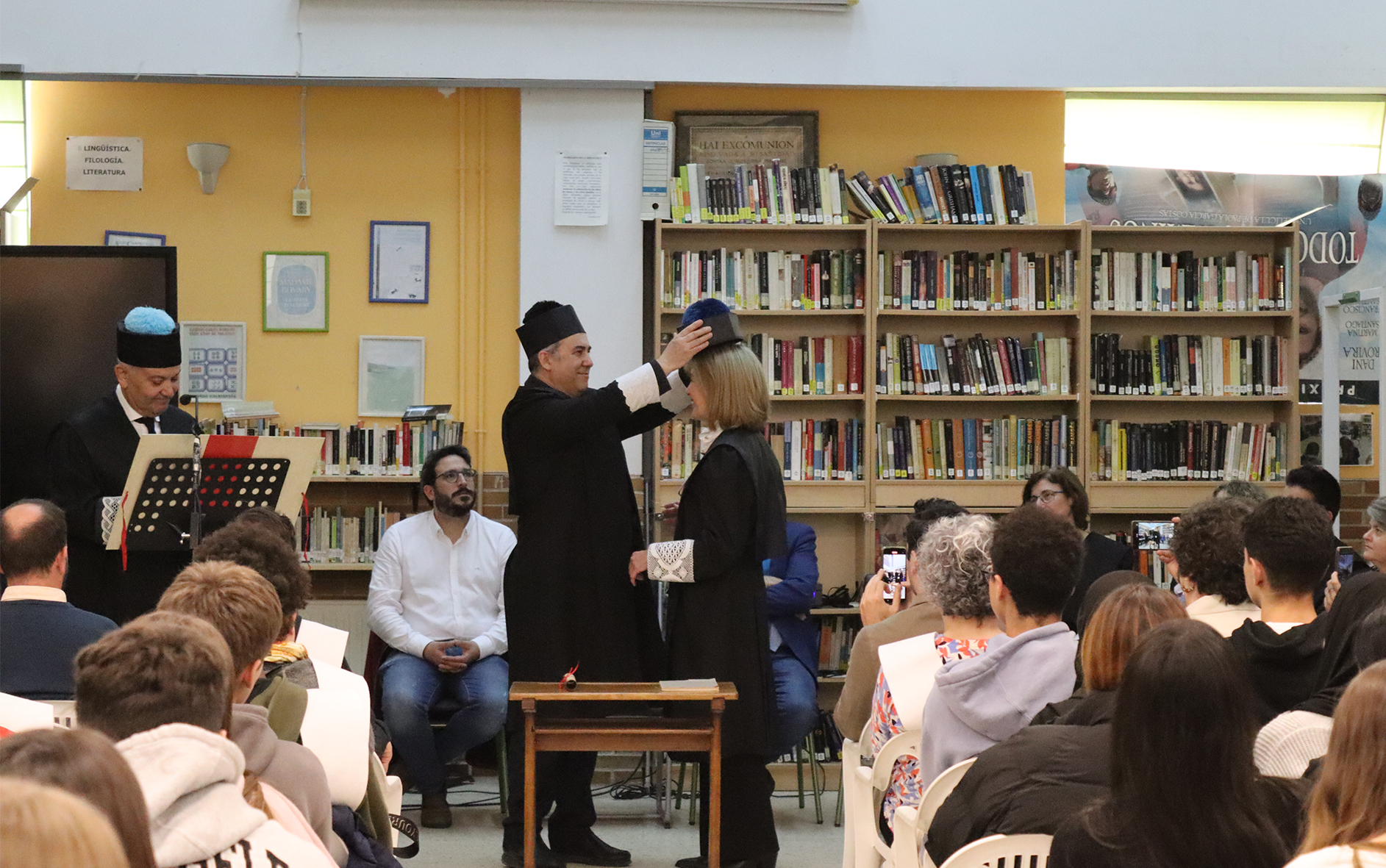 El coro del centro interpretó el himno académico "Gaudeamos Igitur" y una canción de origen africano. Una vez finalizado el acto de nombramiento, Belén Lozano descubrió en el pasillo del centro su fotografía en la galería del "Claustro honorífico".