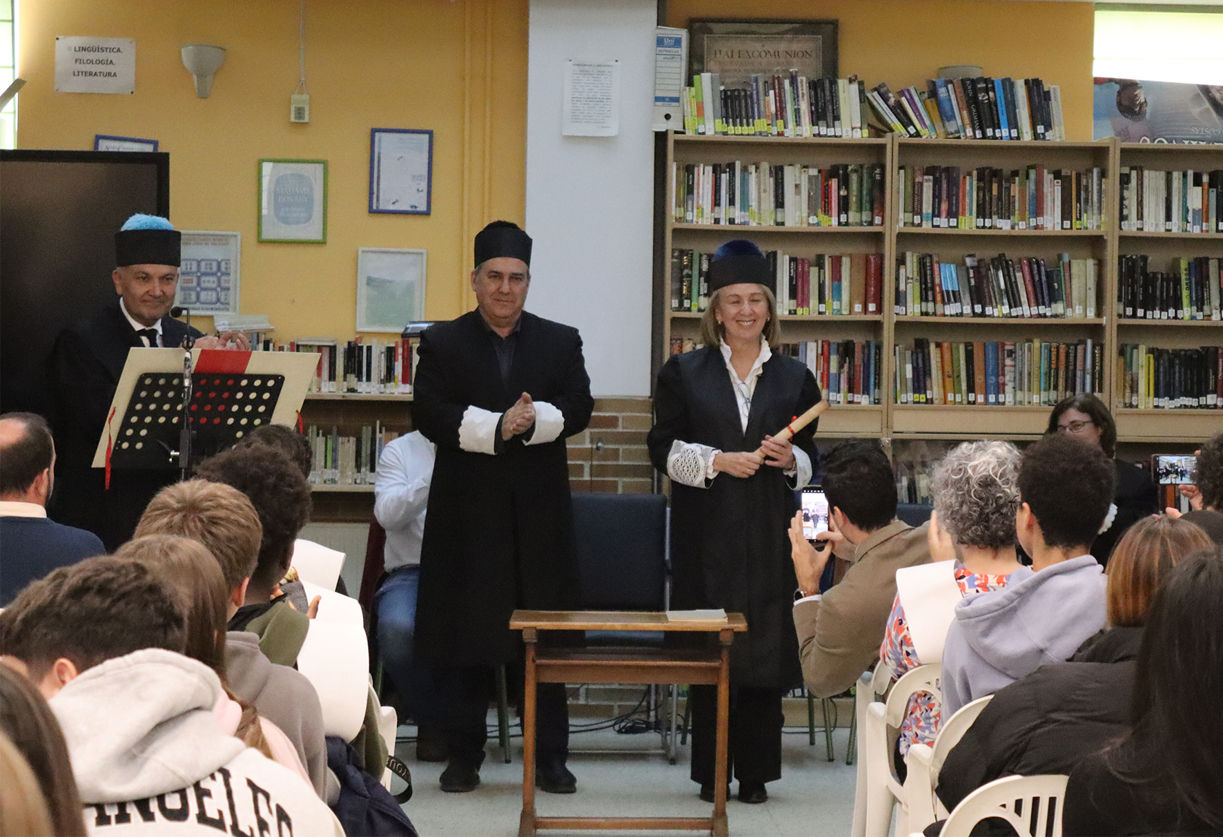 El acto académico, que incluyó la imposición de birrete y la entrega del diploma de nombramiento, se celebraba este miércoles en la biblioteca del instituto. El “Nombramiento de Profesor Honorífico” en el Profesor Domínguez Ortiz es una de las tradiciones rescatadas por el Aula-Museo de este Instituto Histórico de Castilla-La Mancha. Su responsable, Miguel Mayoral, fue el encargado de conducir el acto de nombramiento en el que acompañaron a Belén Lozano integrantes del Claustro de Profesores ataviados con la vestimenta académica de estos docentes en el siglo XIX.