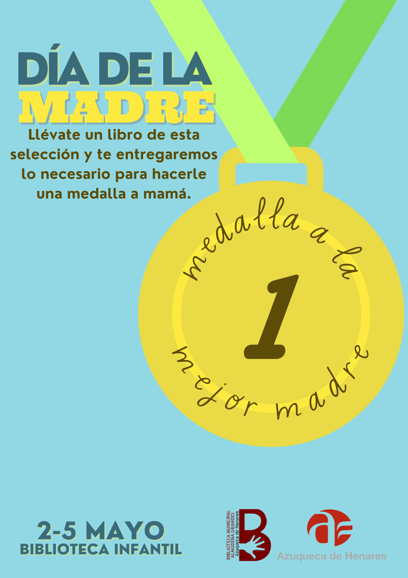 Del 2 al 5 de mayo se pondrá a disposición de los usuarios en la sala infantil una selección de lecturas en torno a la figura de la madre y si se llevan uno de los libros en préstamo les daremos lo necesario para que les hagan una medalla a sus madres.