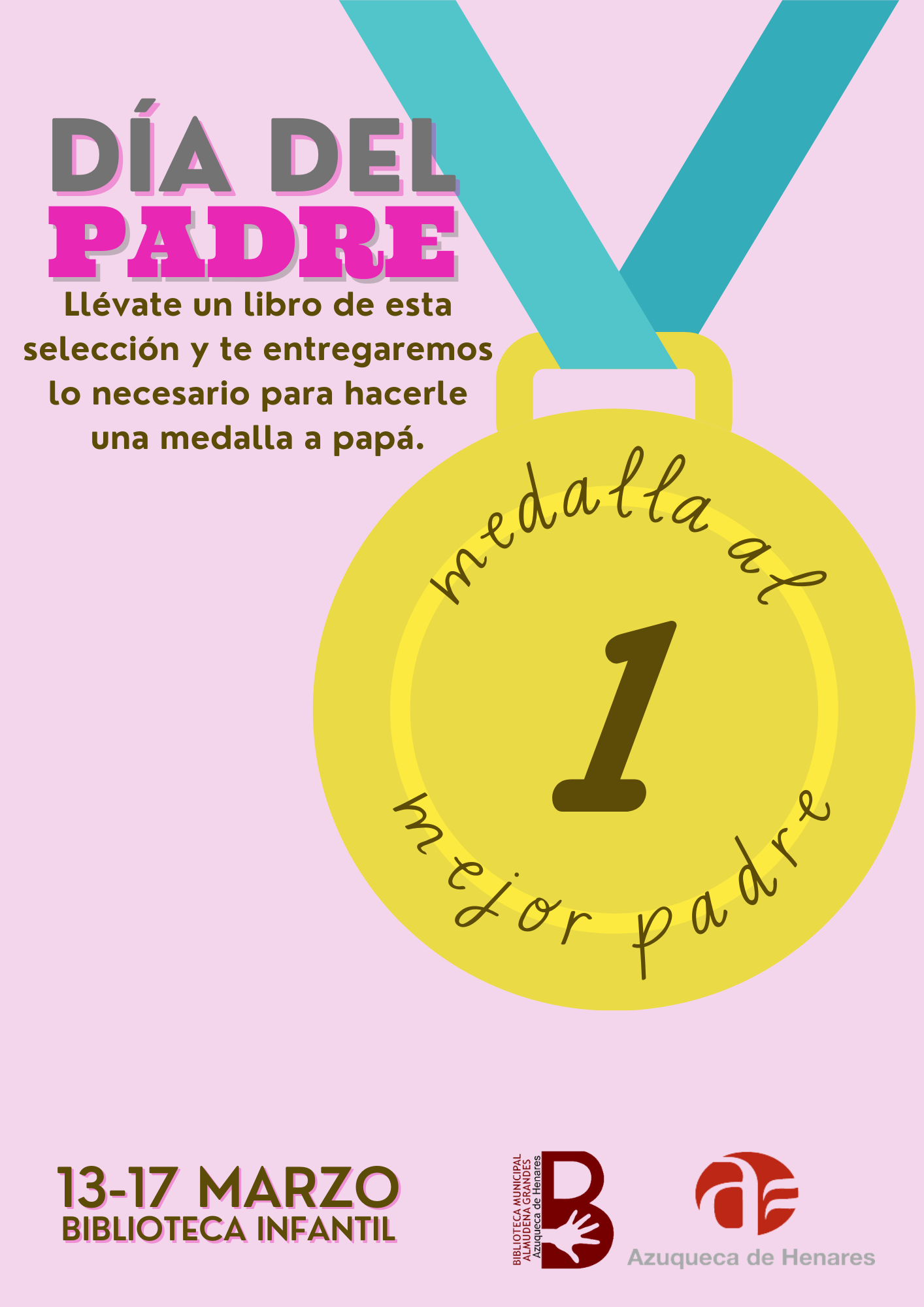 Del 13 al 17 de marzo se pondrá a disposición de los usuarios en la sala infantil una selección de lecturas en torno a la figura del padre y si se llevan uno de los libros en préstamo les daremos lo necesario para que les hagan una medalla a sus padres.