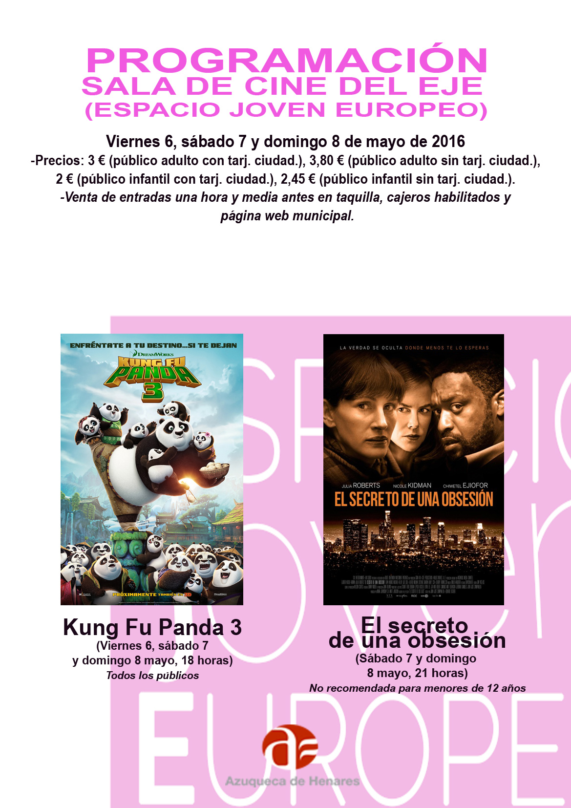 Con la proyección de la película 'Reservoir Dogs', comienza este viernes, 6 de mayo, un ciclo dedicado al cineasta Quentin Tarantino en la sala de proyecciones del Espacio Joven Europeo (EJE) de Azuqueca de Henares. En viernes sucesivos, se proyectarán 'Pulp Fiction' (día 13), 'Malditos bastardos' (día 20), y 'Los odiosos Ocho' (día 27). Todas las películas comenzarán a las 20:30 horas. En lo que a la cartelera comercial se refiere, este fin de semana se vuelve a proyectar en el EJE, en la sesión familiar (viernes, sábado y domingo, a las 18 horas) 'Kung Fu Panda 3'. Para la sesión de adultos la cinta programada este fin de semana es 'El secreto de una obsesión' (sábado y domingo, a las 21 horas). Las entradas para el cine se pueden comprar anticipadamente en los cajeros ciudadanos y a través de esta página web (AQUÍ), y el mismo día de las proyecciones en la taquilla del EJE, una hora y media antes. El precio de las localidades es para los espectadores con Tarjeta Ciudadana de 3 euros (adultos) y 2 euros (niños) y para quienes no tengan este documento municipal, 3,80 y 2,45 euros, respectivamente.'Las cuatro canciones'Por otra parte, este viernes, a las 18 horas, se presentará en la Casita de los Cuentos Eva Ortiz el libro de Estrella Ortiz Las cuatro canciones. Esta actividad, incluida en la programación municipal del Día del Libro, estaba prevista para el pasado viernes, pero fue aplazada por problemas de salud de la autora. Pueden acceder a la presentación las personas que dispongan de invitación.La actividad cultural continúa en el Centro de Ocio Río Henares donde, también el viernes, a las 18:30 horas, se inauguran las exposiciones filatélica de Luis Miguel y de marcapáginas de Julia Piquero que se pueden visitar hasta el día 15 de mayo.Teatro de Nueva IlusiónAdemás, y como arranque de las fiestas de San Isidro, el grupo de teatro de jubilados Nueva Ilusión pone en escena el viernes y el sábado, a las 19 horas, en el salón de actos de la Casa de la Cultura, la obra de Miguel Mihura 'La decente'. Las entradas cuestan 5 euros y se pueden adquirir anticipadamente este miércoles de 11 a 13, en el Centro de Ocio y una hora antes de cada función en la taquilla de la Casa de la Cultura.