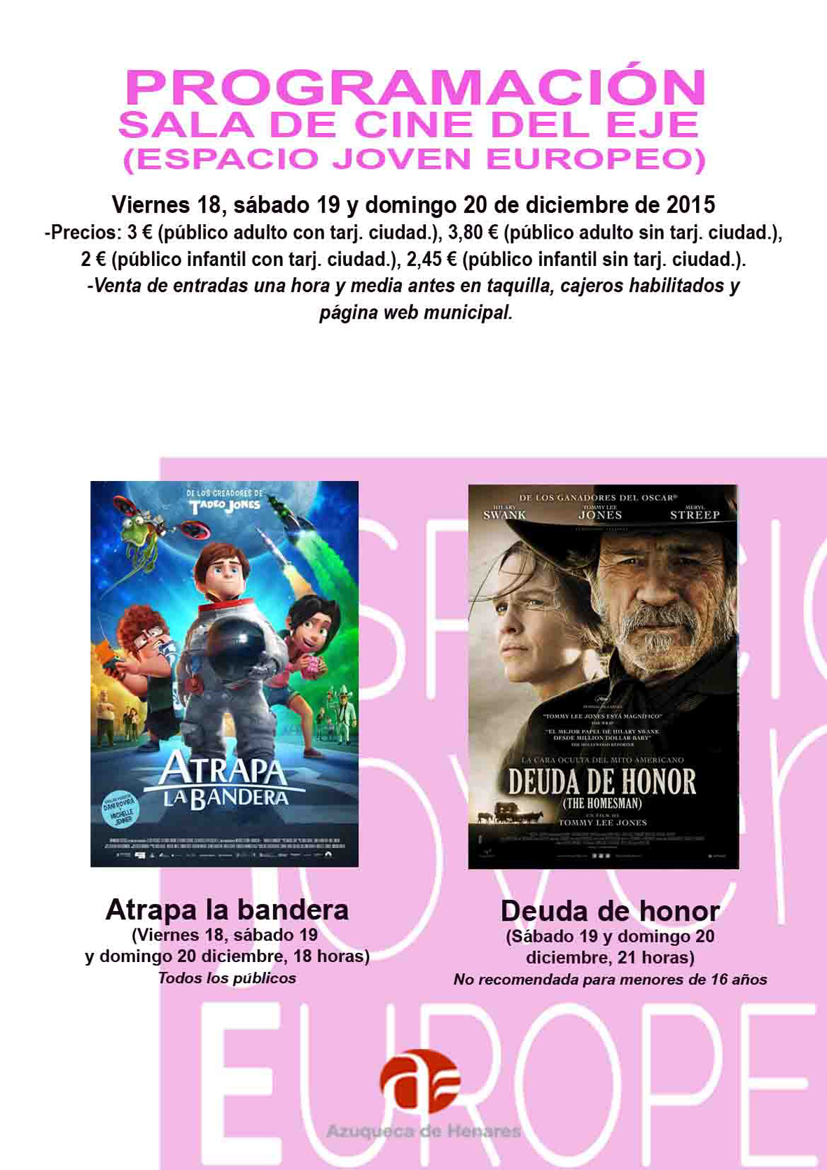 De cara al fin de semana, se han programado un gran número de actividades en Azuqueca de Henares, con propuestas para todas las edades y en distintos puntos de la localidad. En cuanto a la cartelera de cine, la sala de Espacio Joven Europeo (EJE) acoge tres títulos. Por un lado, este viernes 18, a las 20:30 horas, 'Nacido en Gaza' cierra el Ciclo de Cine Documental que se ha venido desarrollando este mes. Además, vuelve a proyectarse la cinta de animación 'Atrapa la bandera' (viernes 18, sábado 19 y domingo 20 de diciembre, 18 h.), además de 'Deuda de honor' (sábado 19 y domingo 20, 21 horas). Las entradas, para los titulares de la Tarjeta Ciudadana cuestan 3 euros (adultos) y 2 euros (niños), mientras que los espectadores que carezcan de este documento municipal, deben abonar 3,80 y 2,45 euros, respectivamente. Se pueden adquirir en la web municipal www.azuqueca.es (pinche aquí), cajeros ciudadanos y en taquilla, hora y media antes del pase.Dentro de las propuestas navideñas, este viernes hay varias citas. A las 19 horas, se celebra la Fiesta OFF 2015 'Let's Party' en el EJE, con actuaciones juveniles de los talleres municipales de Funky, Danza del Vientre, Aerodance, Canto, Batería e Informática musical. La entrada es libre.También, a las 19 horas, pero en la Casa de la Cultura, el taller municipal de Guitarra del profesor Álex del Río ofrece una gala con entrada libre, mientras que a las 20:30 horas, la Banda de Música de Azuqueca protagoniza el tradicional concierto de Navidad. Los asistentes podrán realizar donativos que se destinarán a un proyecto que desarrolla Manos Unidas en Asunción (Paraguay) para la inserción laboral de personas privadas de libertad.Sábado 19 de diciembreYa el sábado 19, la Banda de Música toca, a las 12 horas, en la plaza del General Vives, en el marco de las actividades que impulsan el Consistorio y ACEPA en el Plan de Dinamización del Comercio Local. Dentro de ese programa de actividades, de 12 a 14 horas, Papá Noel visita las principales calles de Azuqueca.Posteriormente, a las 13 horas, la Orquesta del Conservatorio de Guadalajara sube al escenario de la Casa de la Cultura (entrada libre) y, por la tarde, a las 19 horas, es el turno de Pasión Flamenca al Alba, que actúa a beneficio de la asociación Caminando (precio: 2 euros).Por su parte, las Asociaciones de Madres y Padres de Alumnos (AMPA) y el Ayuntamiento de Azuqueca de Henares organizan también el sábado, de 11 a 14:30 horas, el tradicional mercadillo solidario en el colegio La Paloma. Además, de 11:30 a 21 horas, se instala una Muestra Navideña de Artesanía en el parque de La Ermita, mientras que, de 10 a 15 horas, hay una nueva edición del Mercado de la Tierra en el parque de La Constitución.