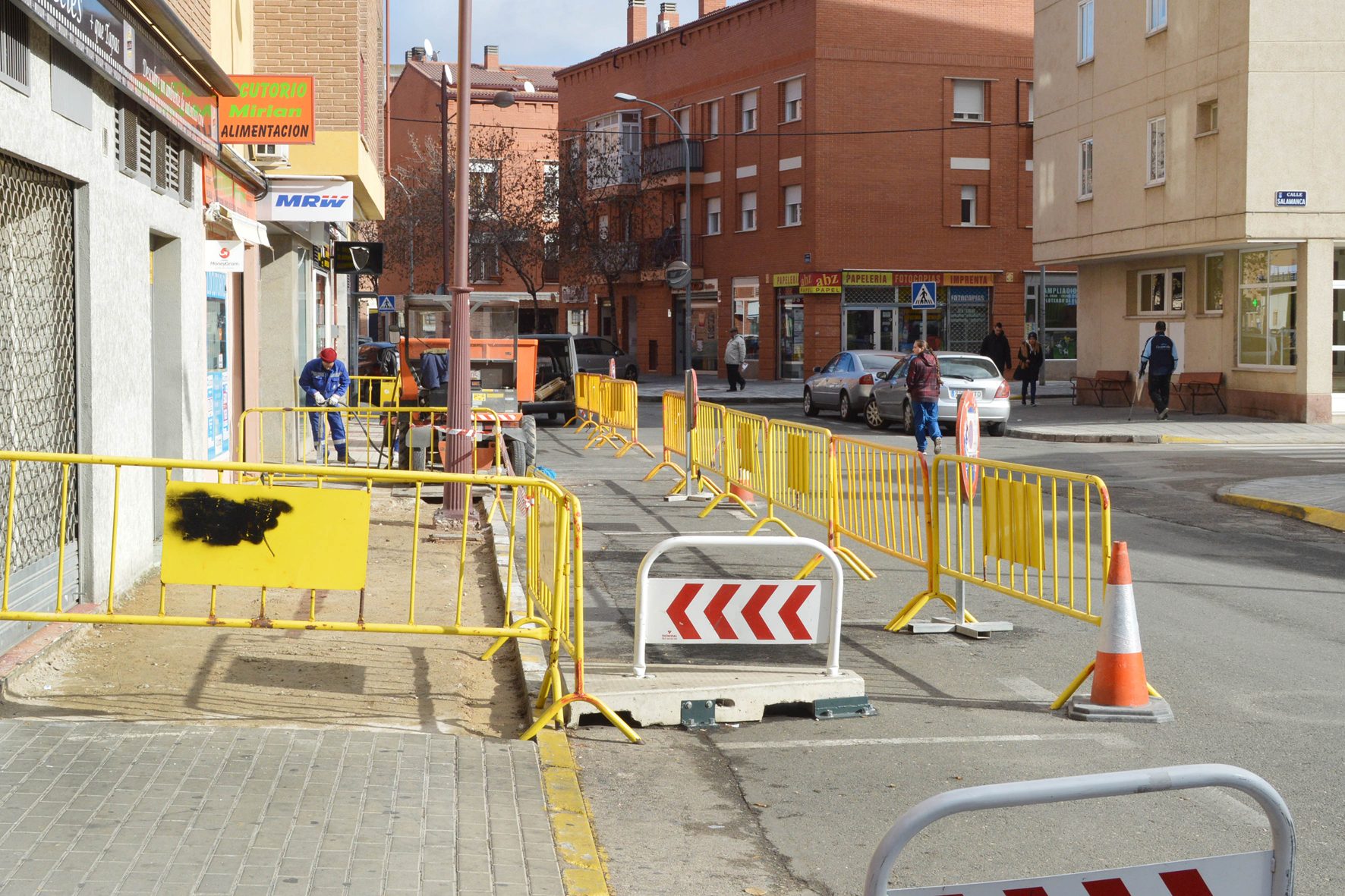 Operarios del Ayuntamiento de Azuqueca de Henares han iniciado los trabajos para renovar un tramo de acera de la calle Cuenca de unos 35 metros lineales, en la zona más próxima a la avenida de La Constitución. La concejala de Urbanismo, Beatriz Pérez, ha explicado que "este era el único tramo de la calle en el que se conservaban las viejas baldosas de color blanco y rojo". "En total, vamos a actuar en una superficie de unos 90 metros cuadrados, sustituyendo el viejo pavimento por otro gris granallado con cinta de pizarra roja, similar al que hemos instalado recientemente en la calle San Miguel o al que se está poniendo también en la calle Poeta Manuel Martínez, cerca de los institutos", explica Pérez. Los trabajos comenzaron el miércoles. Ya se ha completado la demolición y la retirada del material antiguo y la próxima semana los operarios empezarán a poner las nuevas baldosas, según las previsiones del Ayuntamiento. "Se trata de una actuación pequeña, en la que invertiremos escasos días, salvo que las necesidades imprevistas de trabajo de los operarios de la brigada obliguen a actuar antes en otros puntos del municipio", finaliza la edil.