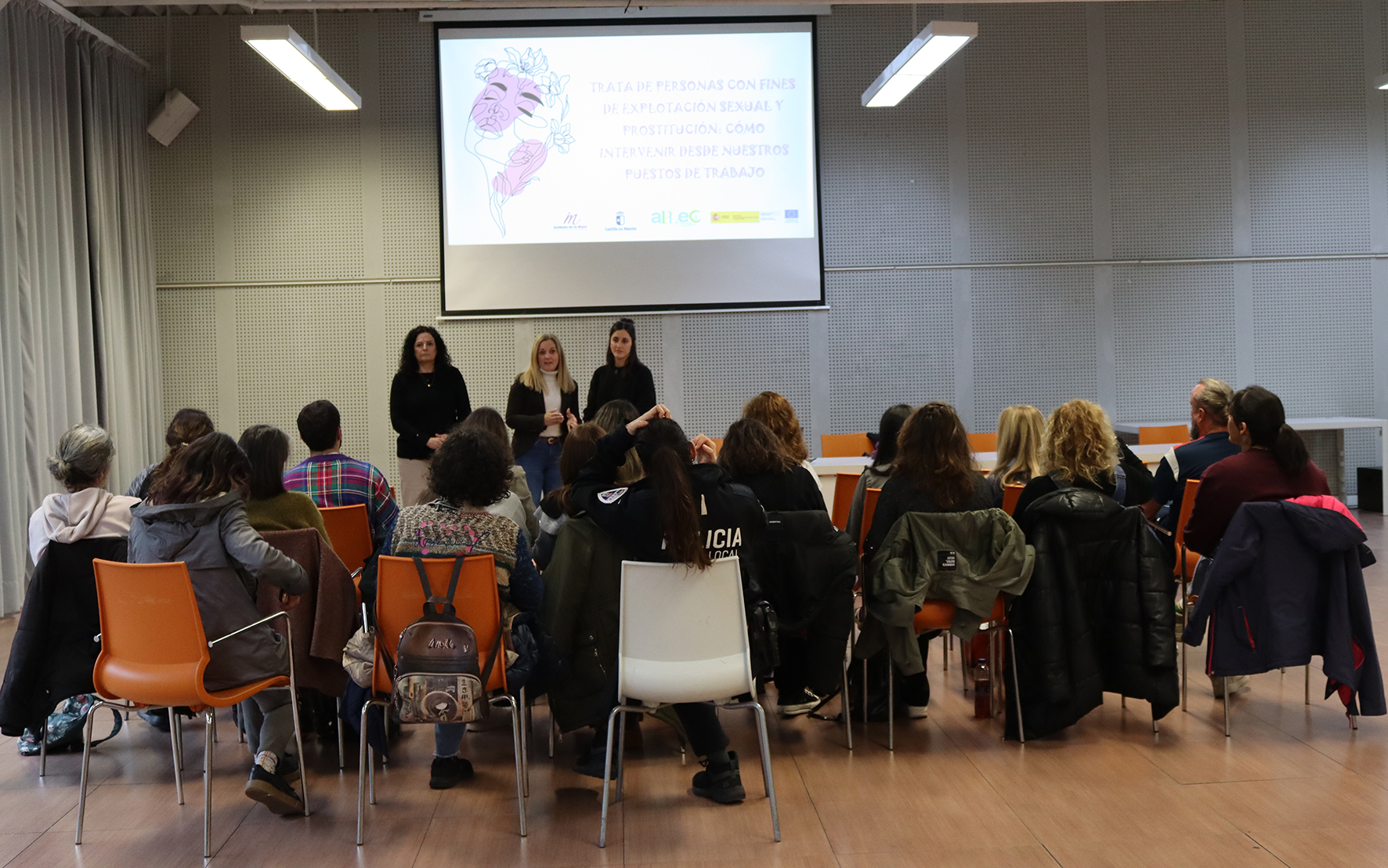 Este lunes, 24 de noviembre, se está desarrollando en el Centro de Ocio Río Henares la jornada formativa “Cómo prevenir desde nuestros puestos de trabajo”, en la que están participando una veintena de profesionales de distintos ámbitos: la Policía Local, el Centro de la Mujer, el Centro Integral, Cáritas, Servicios Sociales o la atención sanitaria. Con esta sesión, que imparte una psicóloga de la asociación Aplec, se pretende proporcionar recursos a los profesionales para actuar frente a posibles casos de trata de personas con fines de explotación sexual.